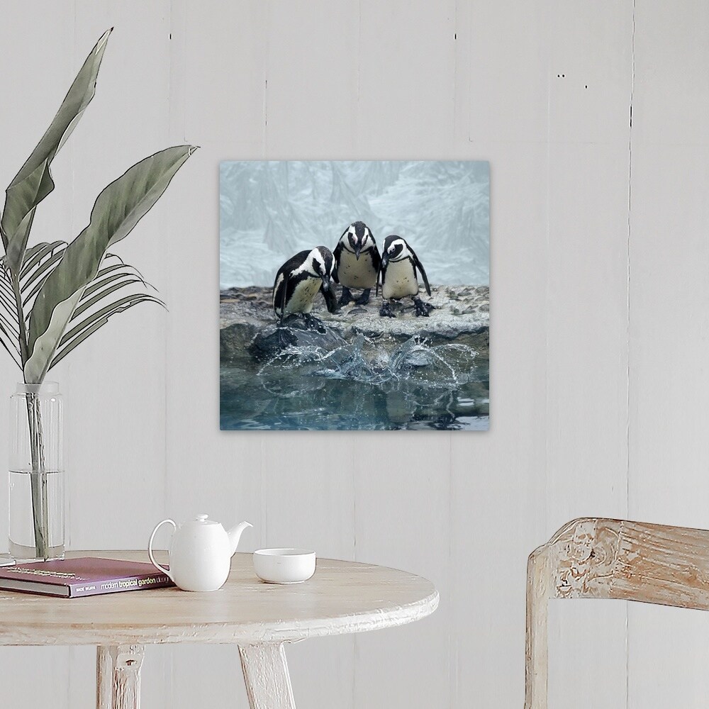"Jackass penguins overlooking water before diving all together." Canvas Wall Art