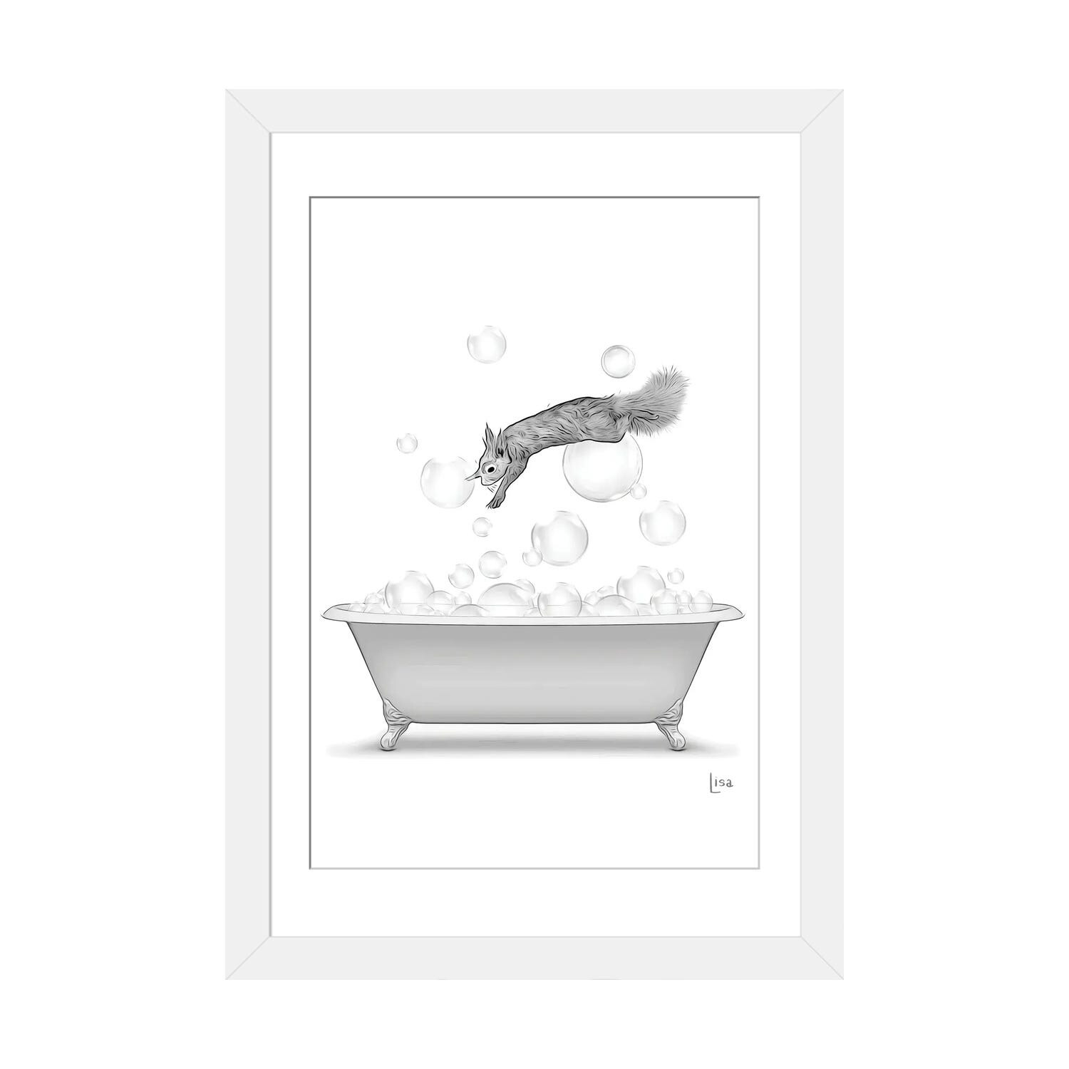 iCanvas "Squirrel Diving Into the Bathtub With Bubbles" by Printable Lisa's Pets