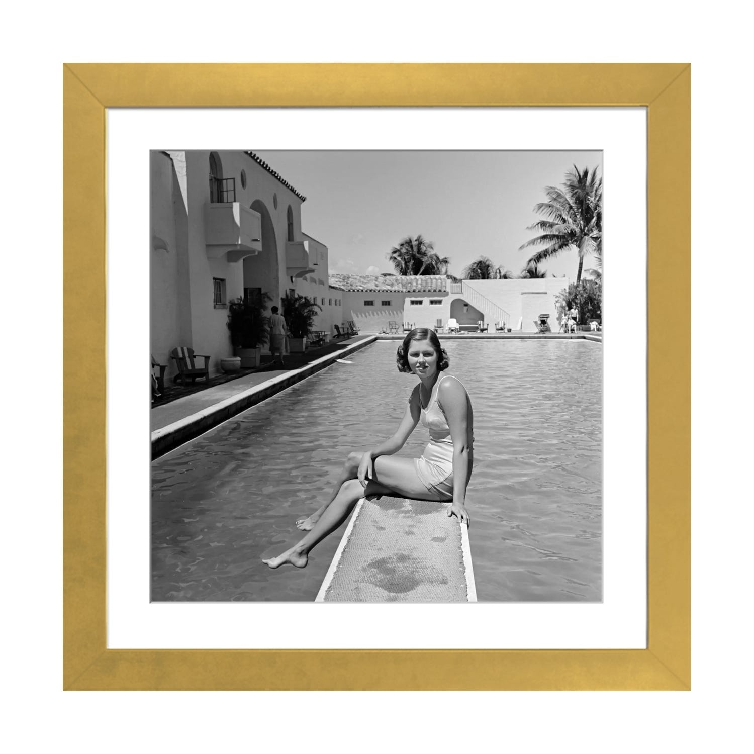 iCanvas "1930s Woman on Pool Diving Board Palm Tree" by Vintage Images Framed Canvas Print