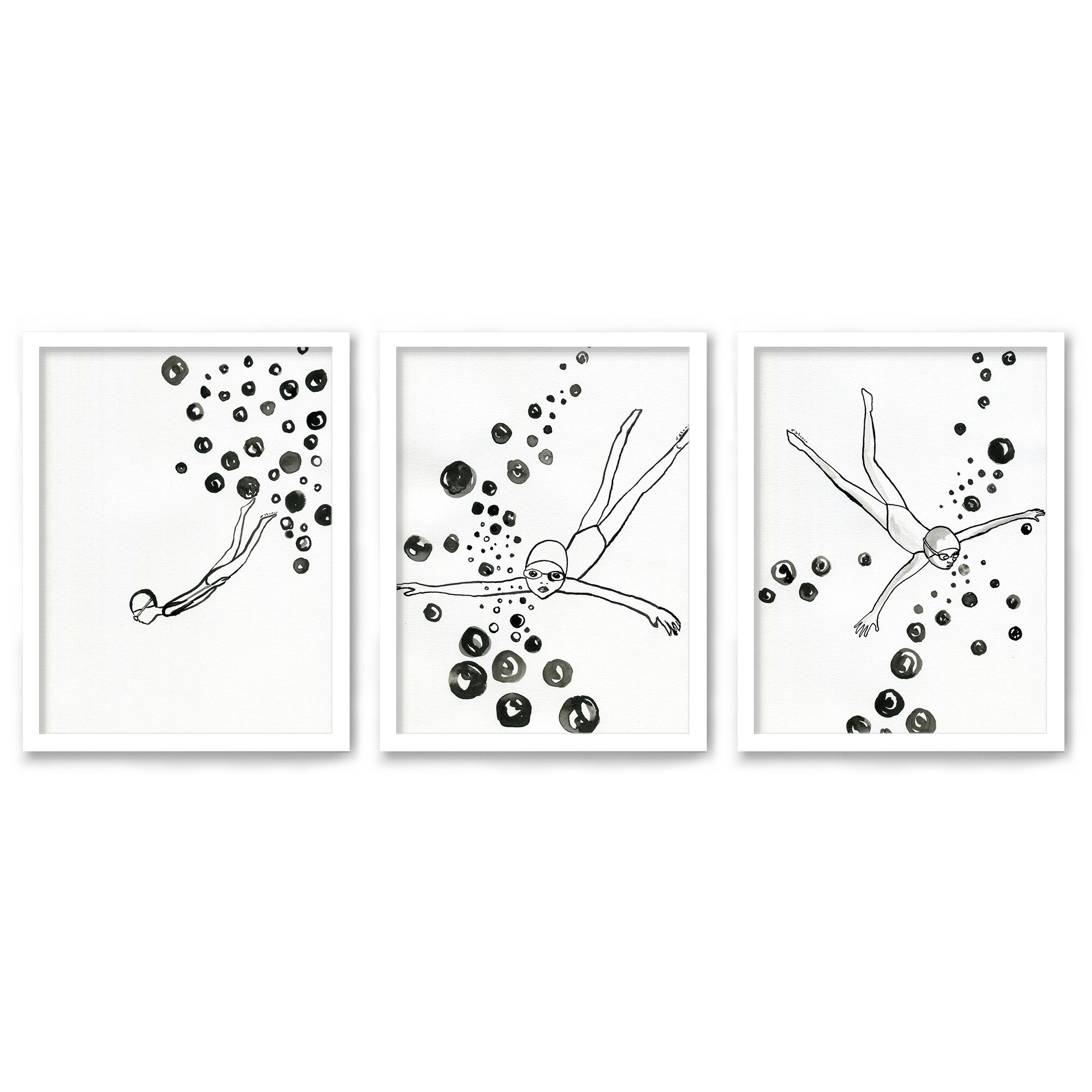 (Set of 3) Triptych Wall Art Wall Art Black and White Dive by Dreamy Me Framed Prints - Variety of Sizes and Colors