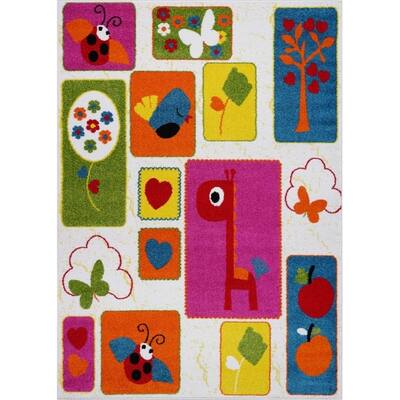 LaDole Rugs Cream and Multicolor Nature Theme Kids Area Rug Carpet