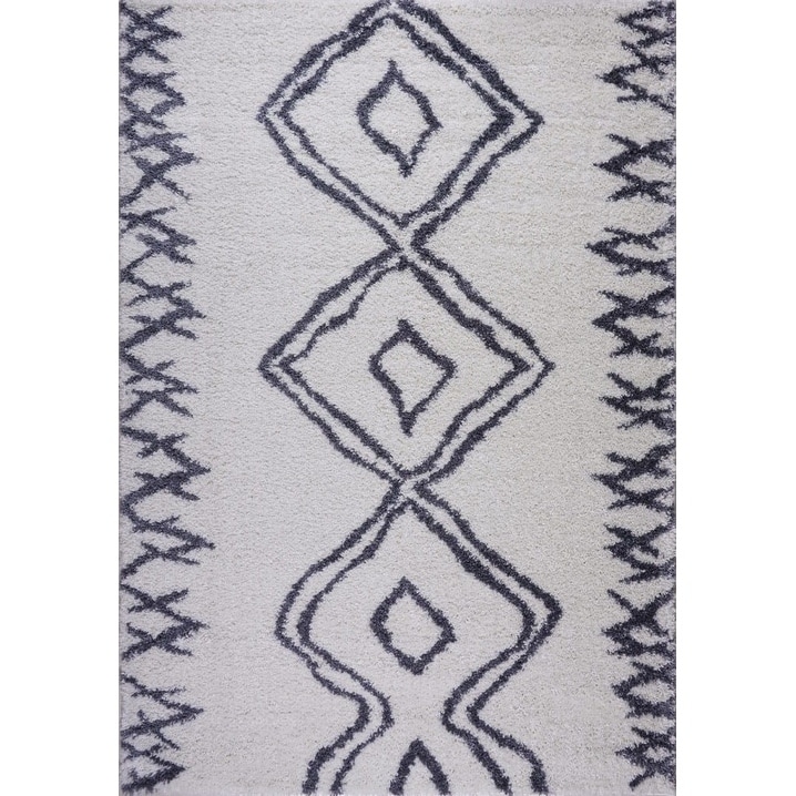 LaDole Rugs Shaggy Asilah Abstract Area Rug Runner in Dark Gray White