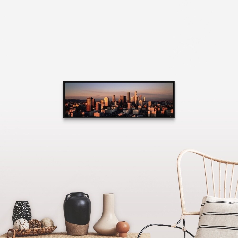 "California, Los Angeles, Skyline at dusk" Black Float Frame Canvas Art