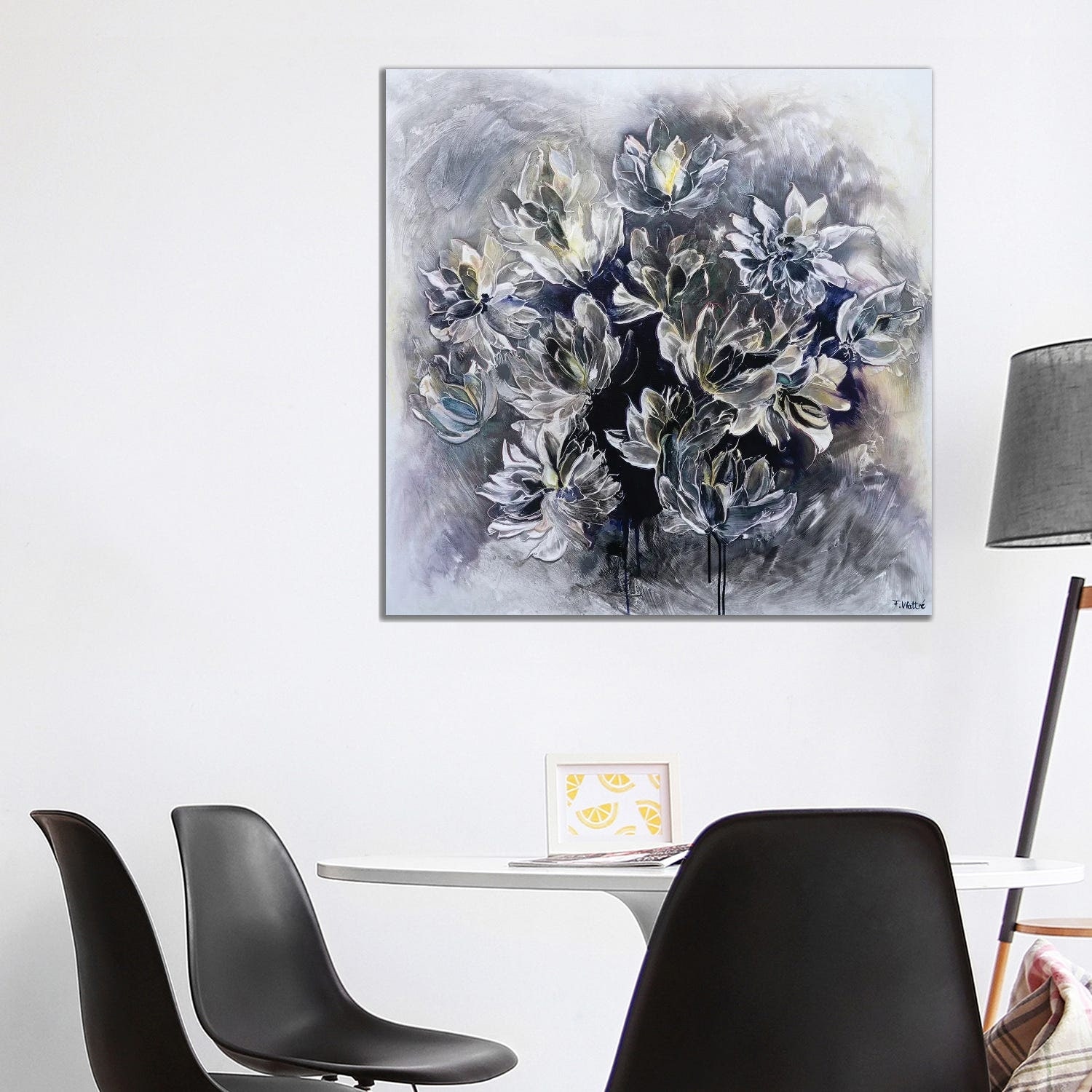 "Waterfront at dusk." Black Float Frame Canvas Art