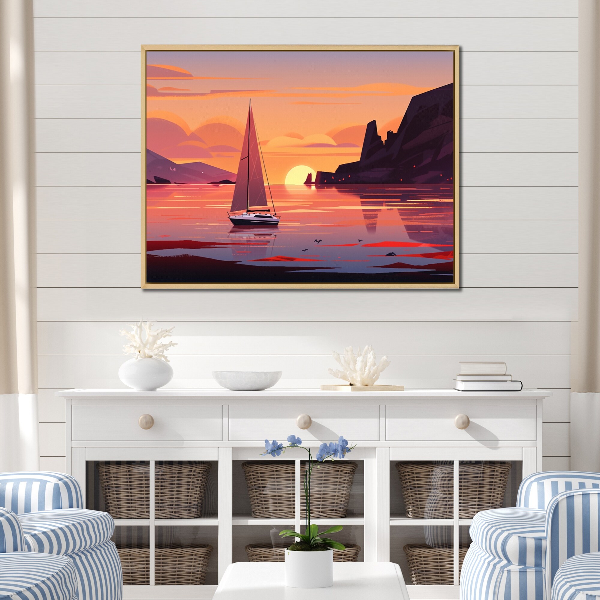 Designart "Beachside Dusk" Coastal Framed Canvas Art Print