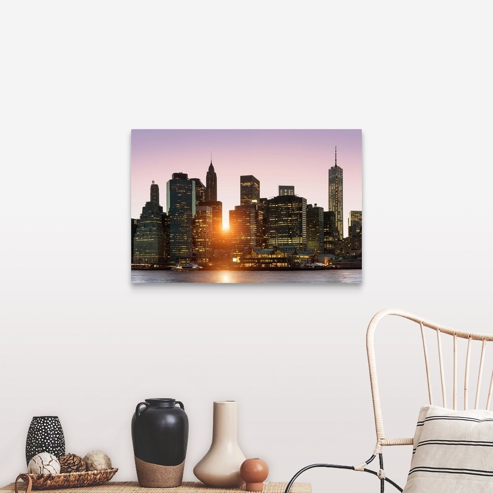 "New York, Skyline of Manhattan at Dusk" Canvas Wall Art