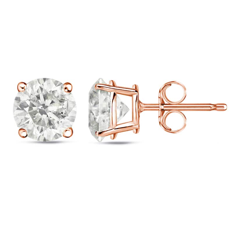 Auriya Round Diamond Stud Earrings 1 to 2ct TDW 14k Rose Gold Certified (J-K, I1-I2)