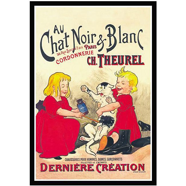 Oge 'Chat Noir et Blanc' Framed Canvas Art