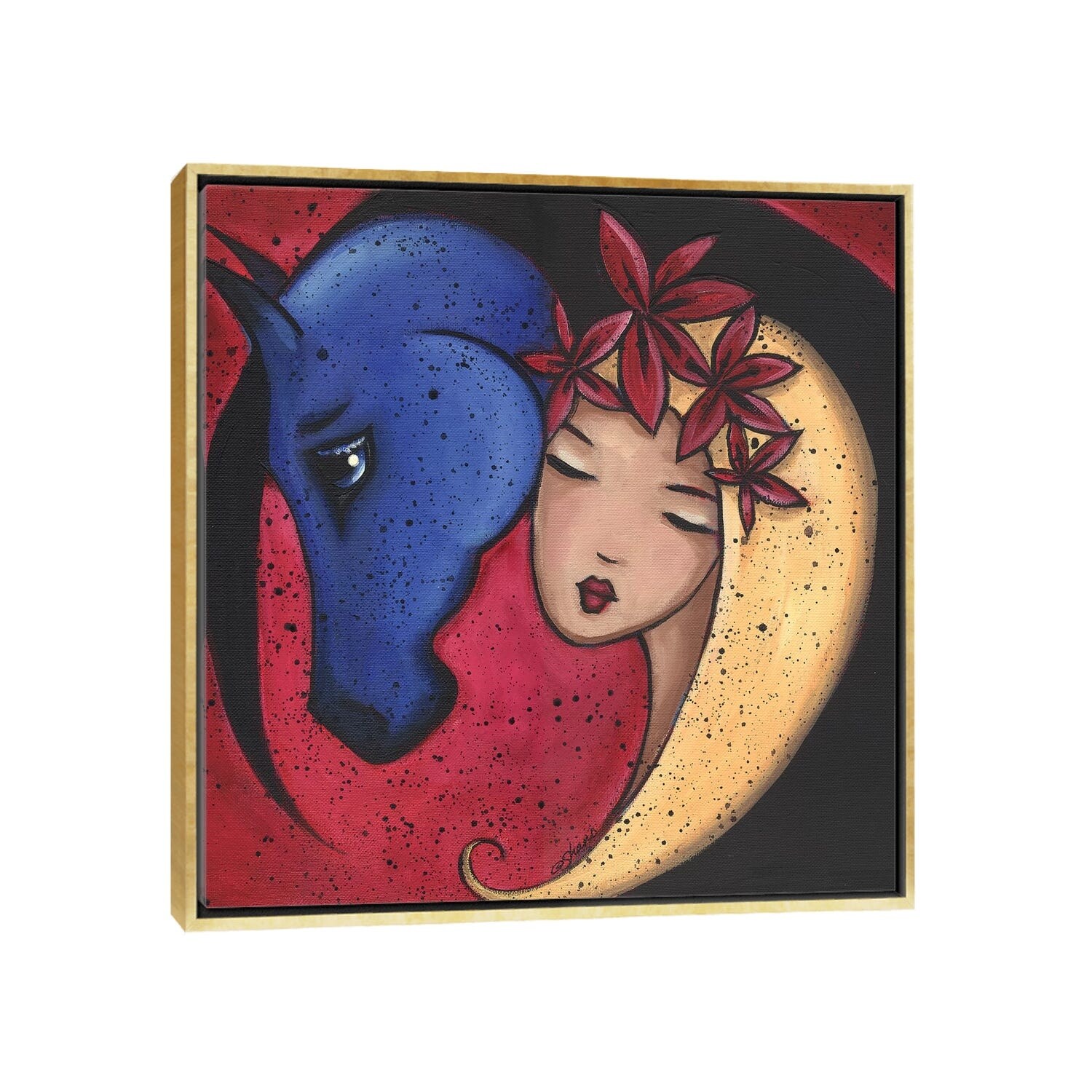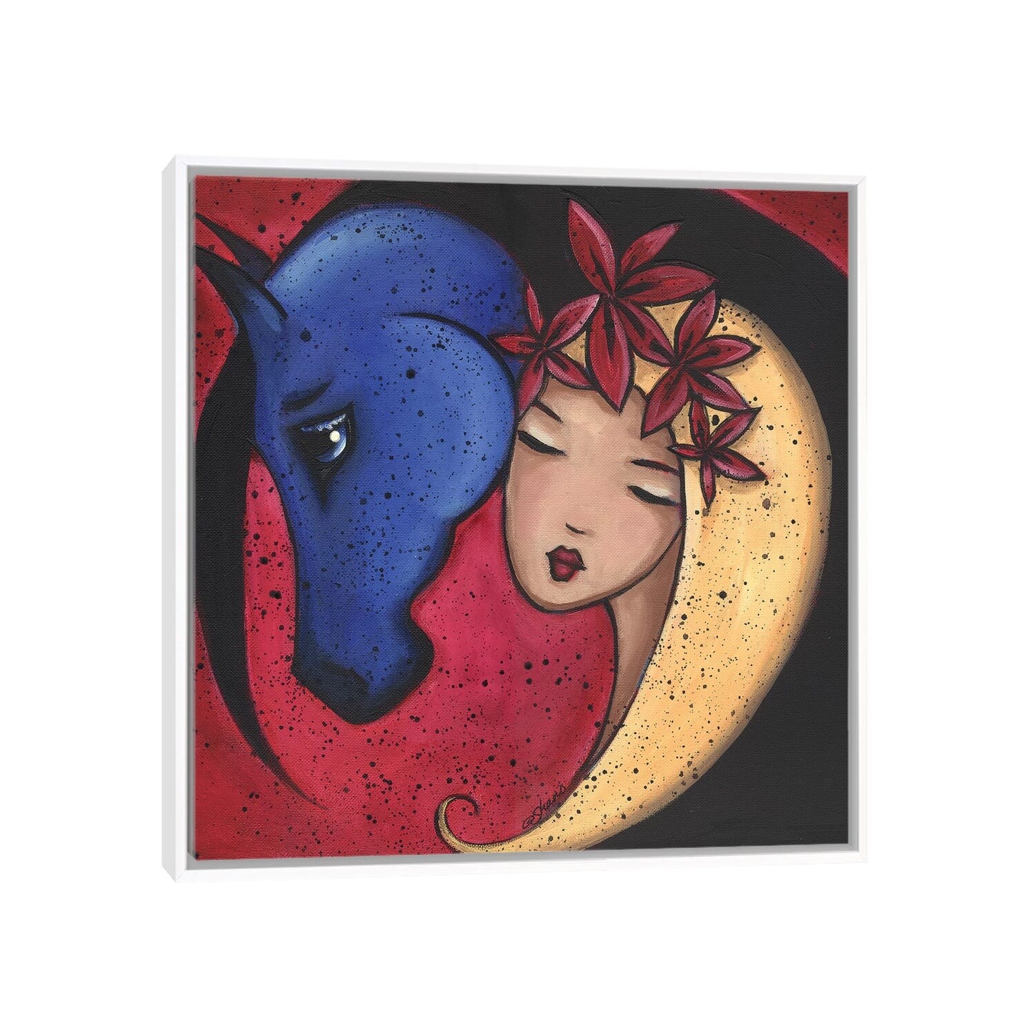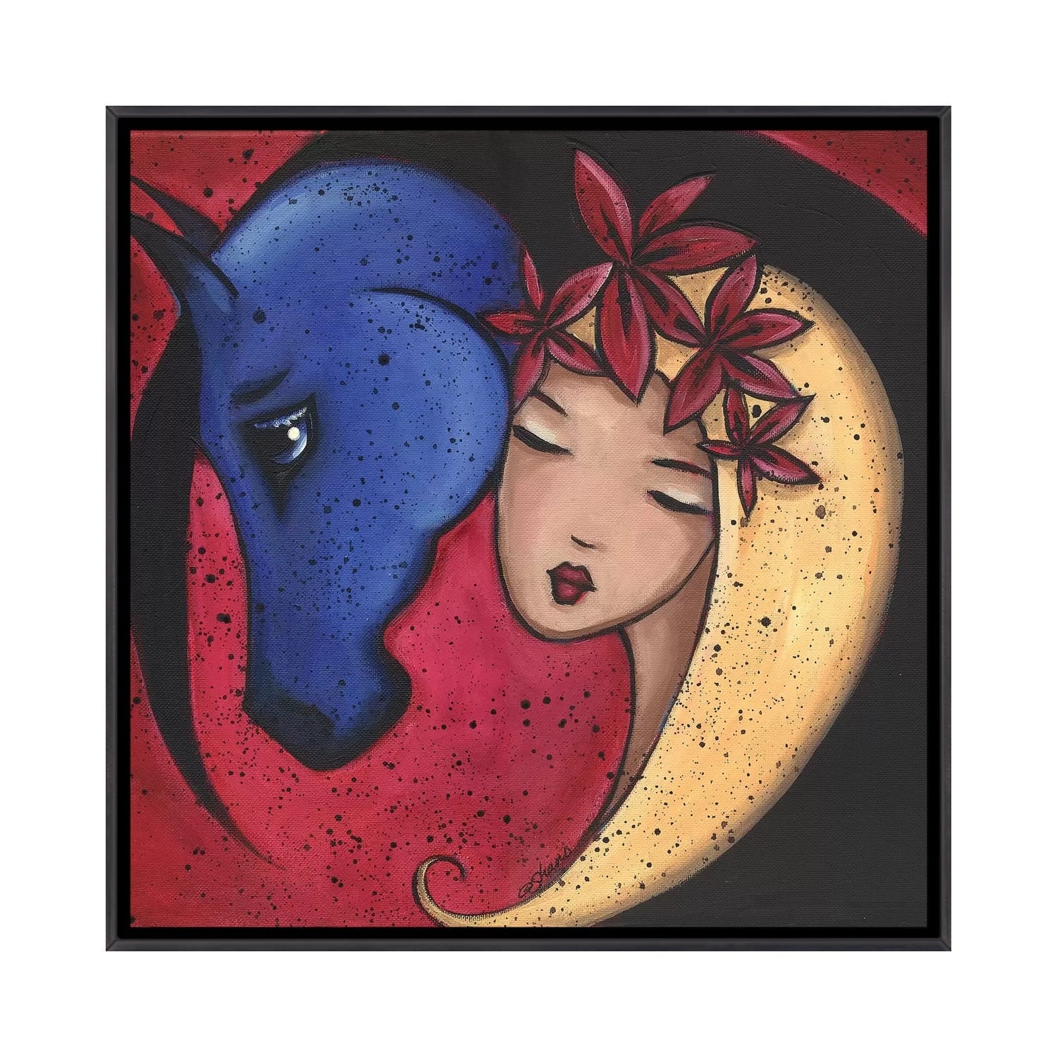 iCanvas "Femme Et Cheval Bluehorse" by ArtByShano Framed Canvas Print