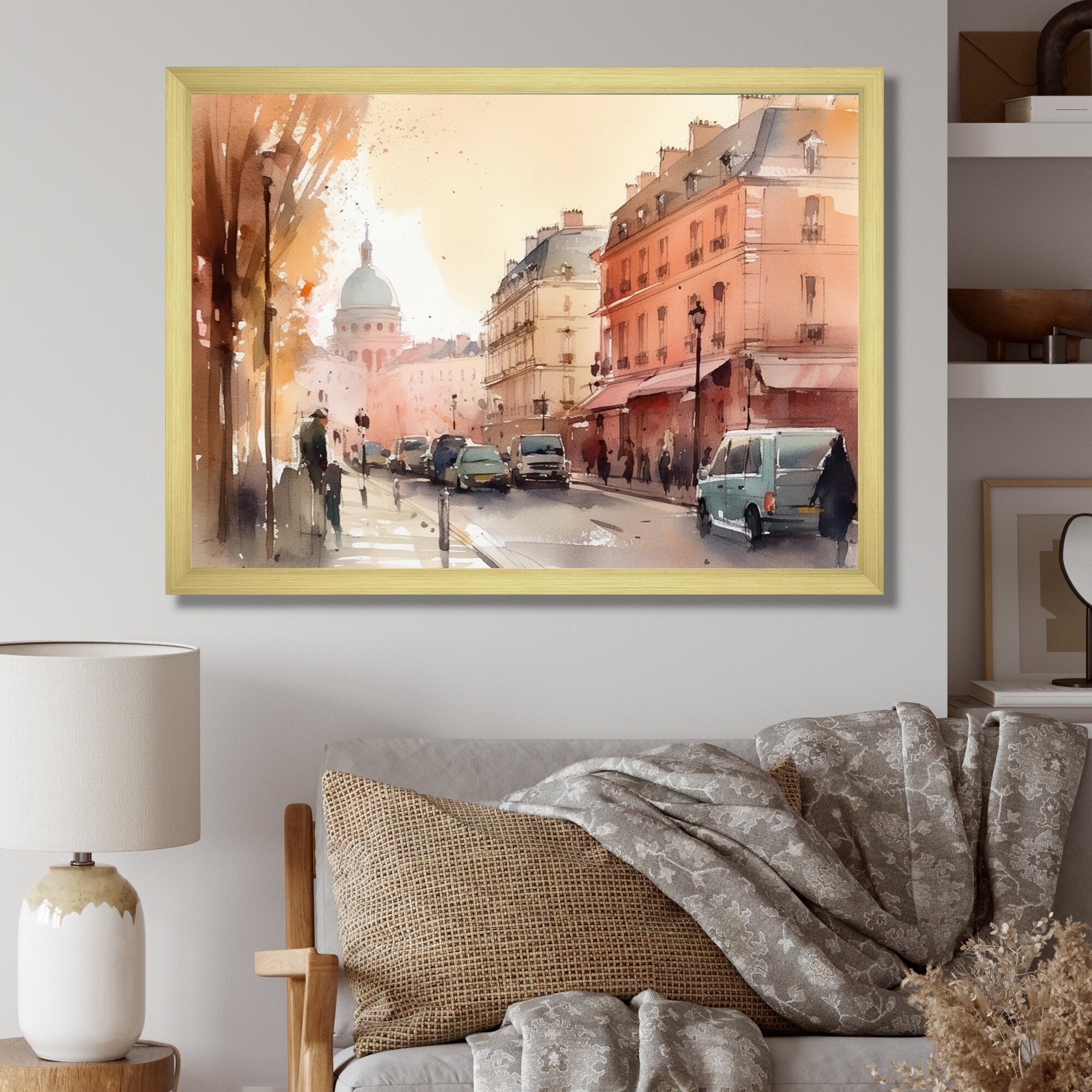 Designart "Watercolor Of Paris France Iv" City Paris Framed Canvas Print