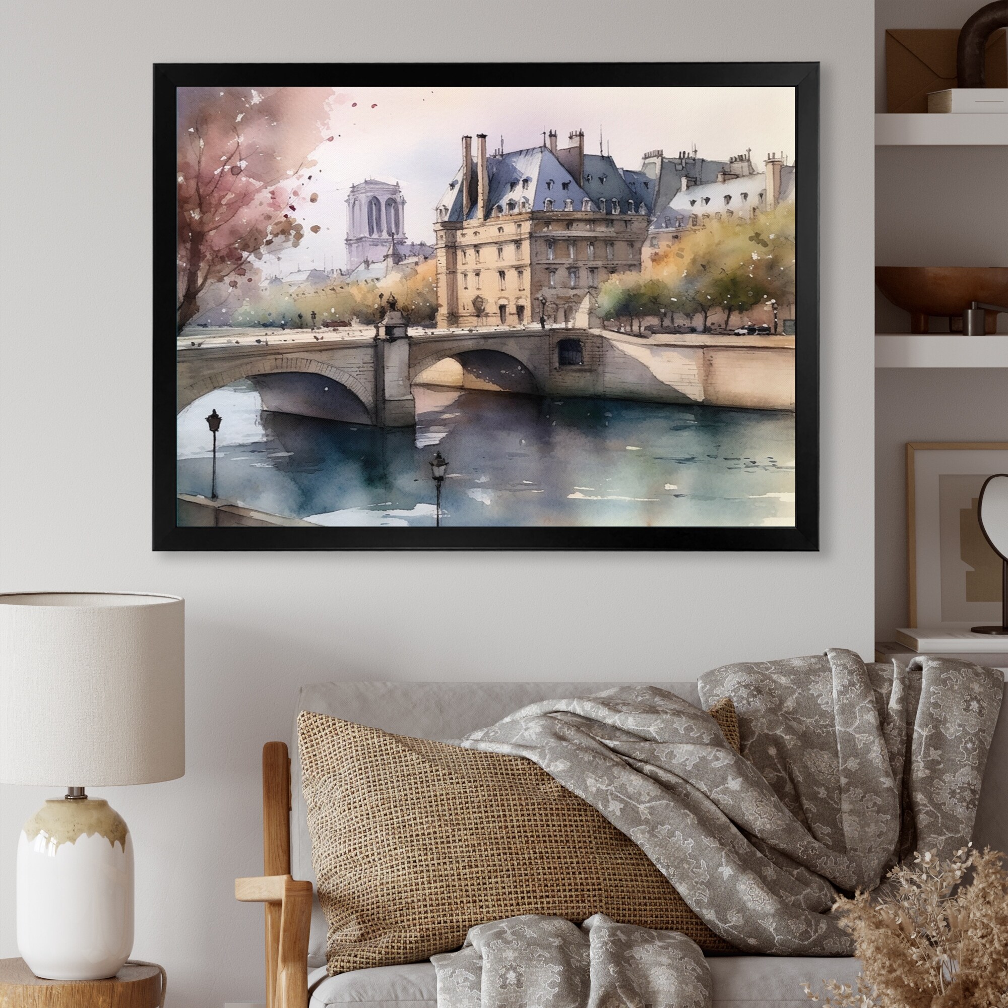 Designart "Watercolor Of Paris France Ii" City Paris Framed Canvas Wall Art