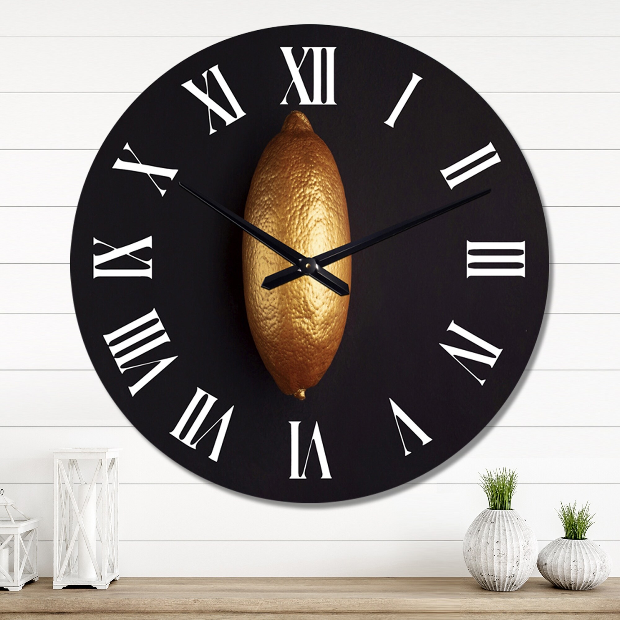 Designart 'Gold Painted Tropical Fruits on Black I' Traditional wall clock