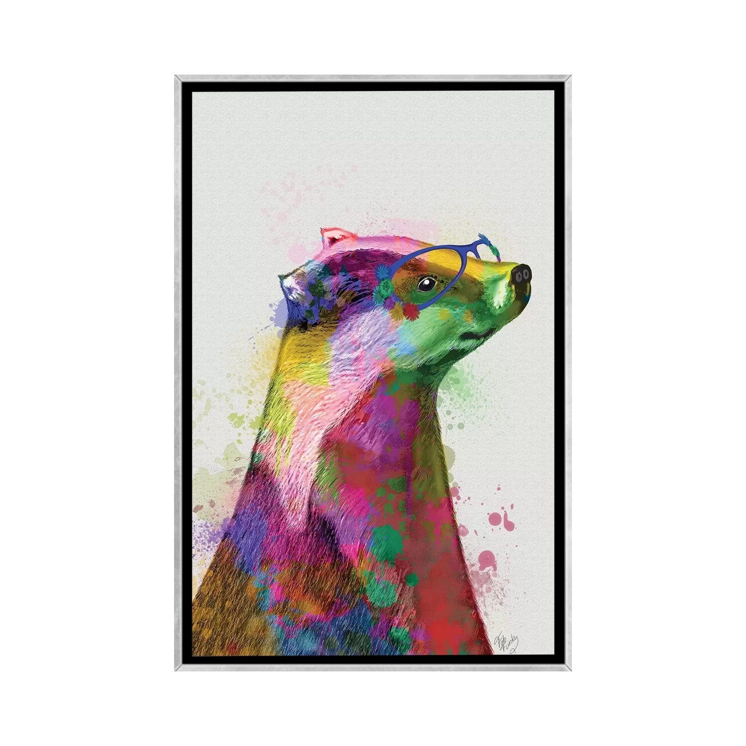 iCanvas "Badger Rainbow Splash 2" by Fab Funky Framed