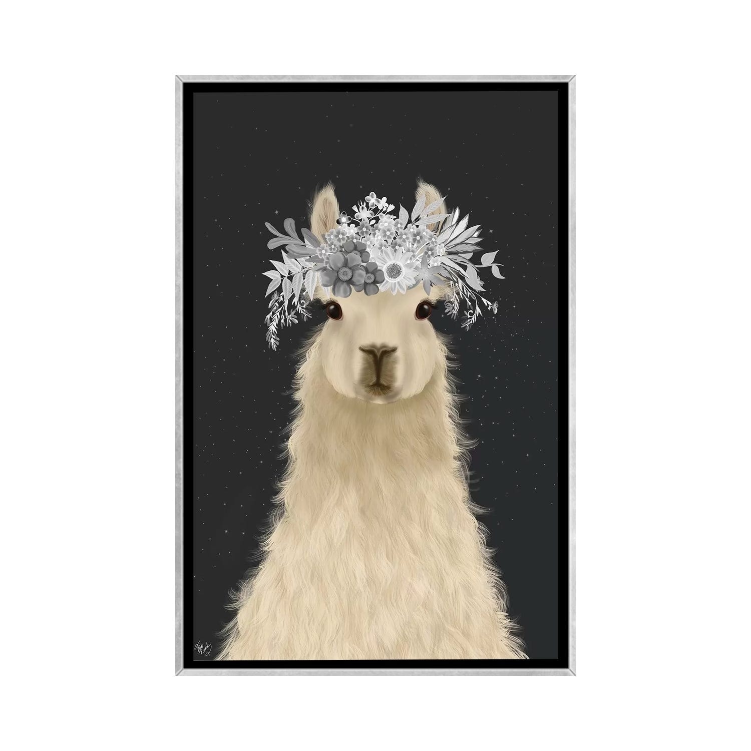 iCanvas "Llama White Flowers" by Fab Funky Framed