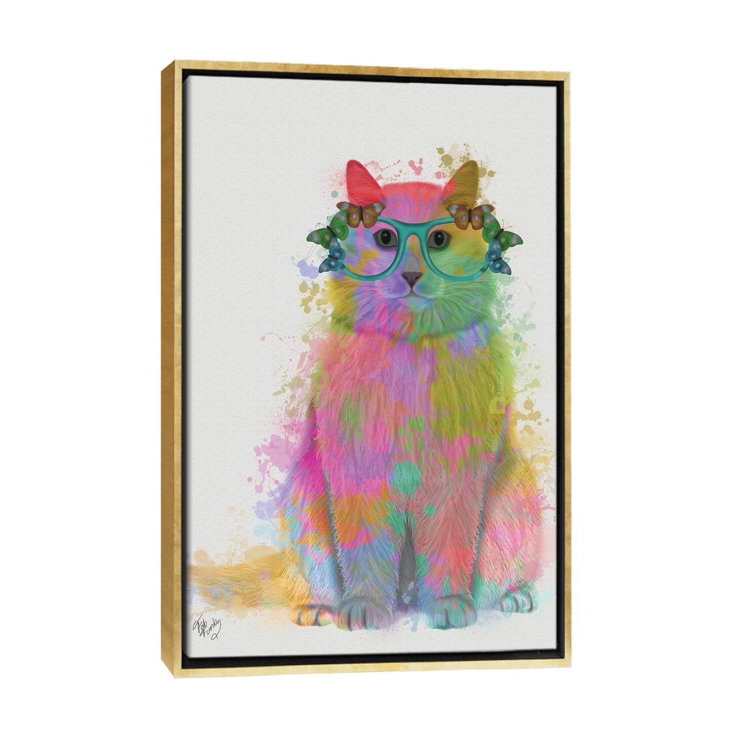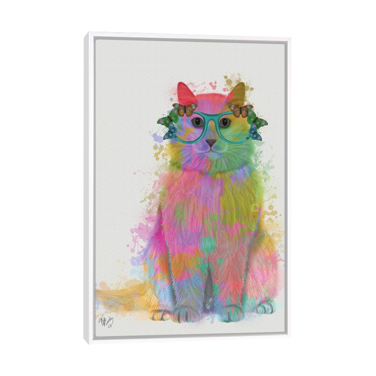 iCanvas "Rainbow Splash Cat III, Full" by Fab Funky Framed