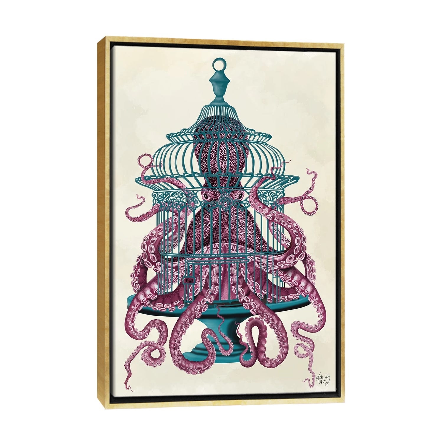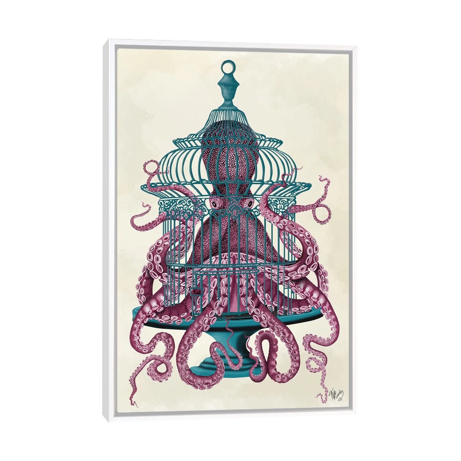 iCanvas "Pink Octopus in Cage" by Fab Funky Framed