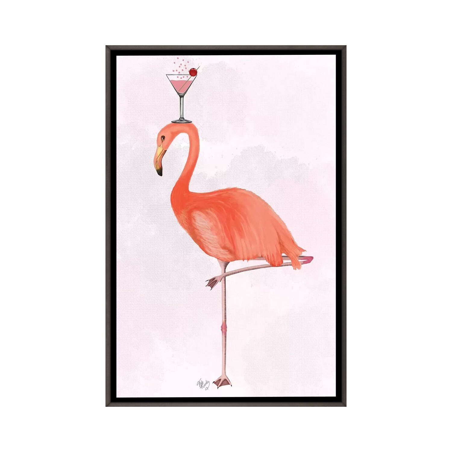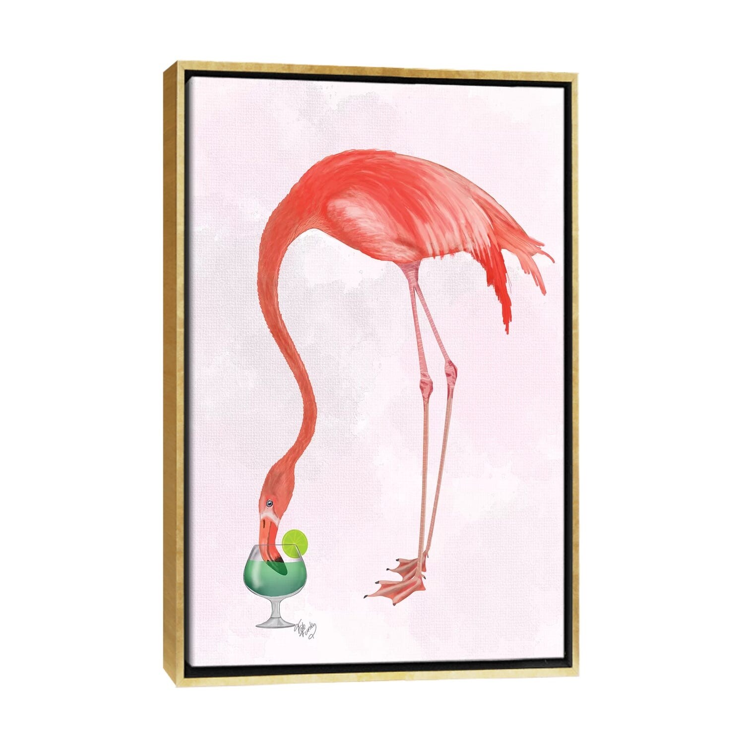 iCanvas "Flamingo and Cocktail II-I" by Fab Funky Framed