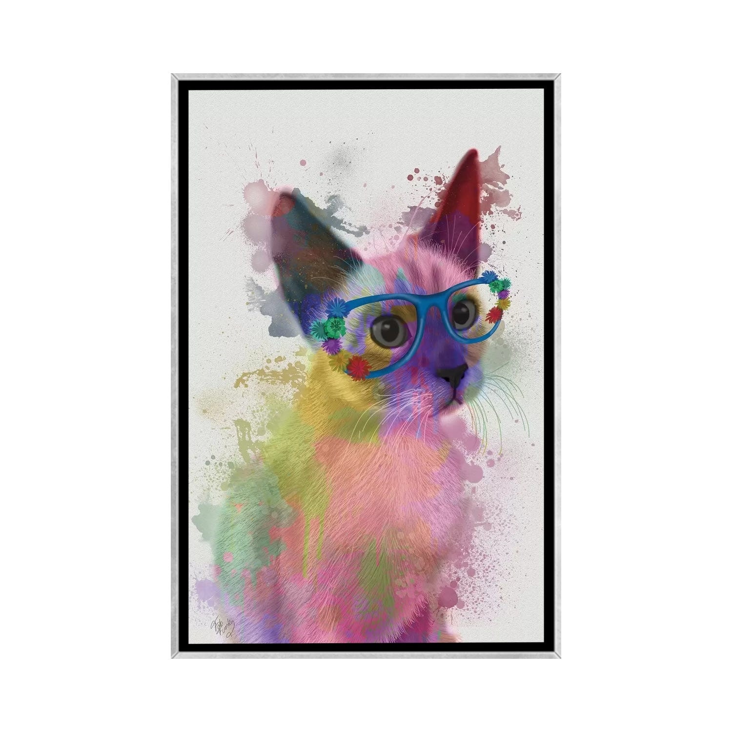 iCanvas "Rainbow Splash Cat II" by Fab Funky Framed