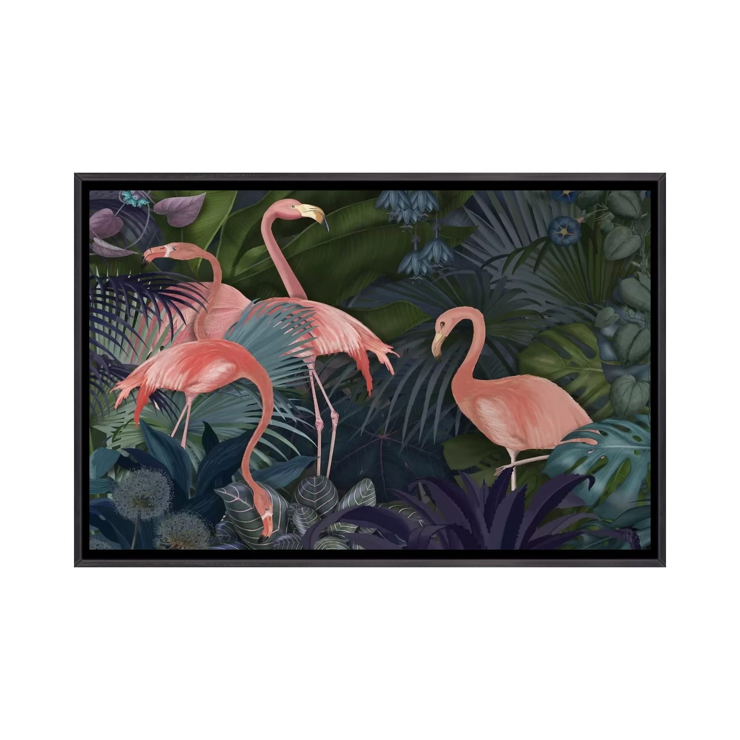 iCanvas "Flamingos In A Garden II" by Fab Funky Framed