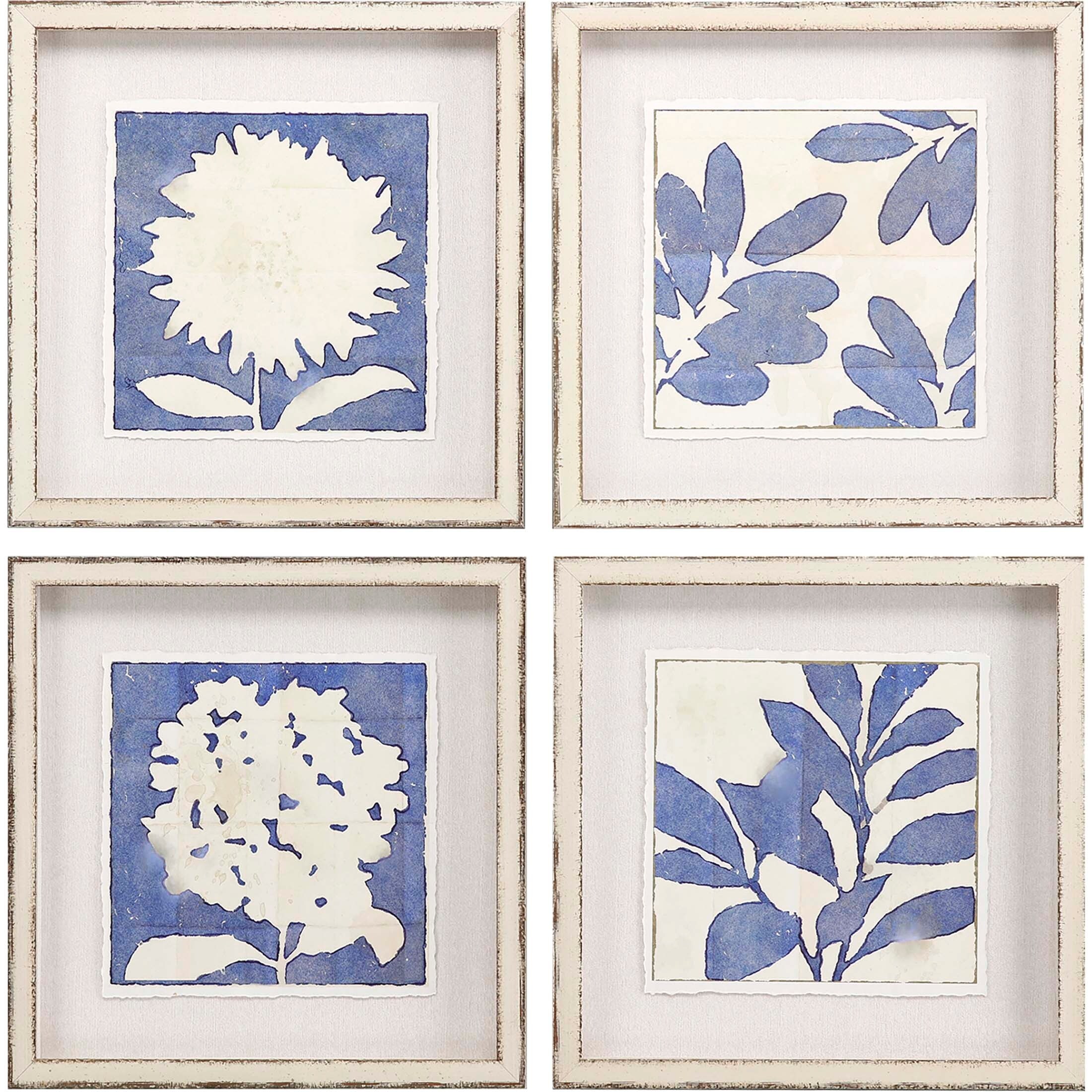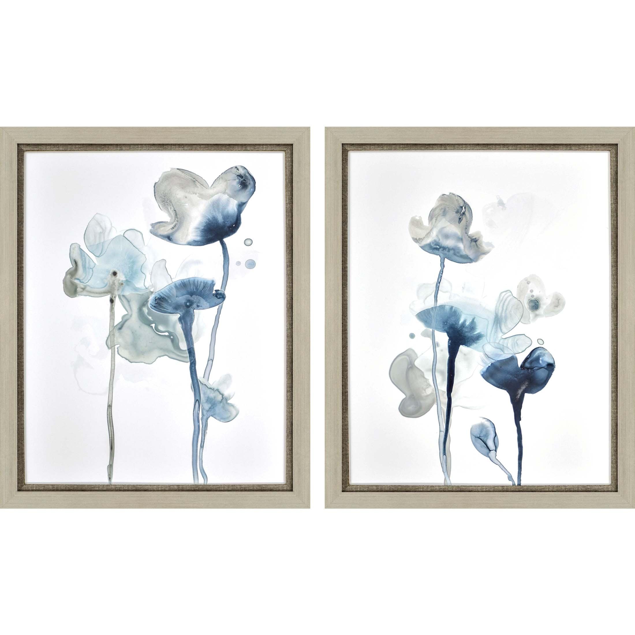Eloquent Botanicals S/2 Framed Art Giclee Under Glass - Blue