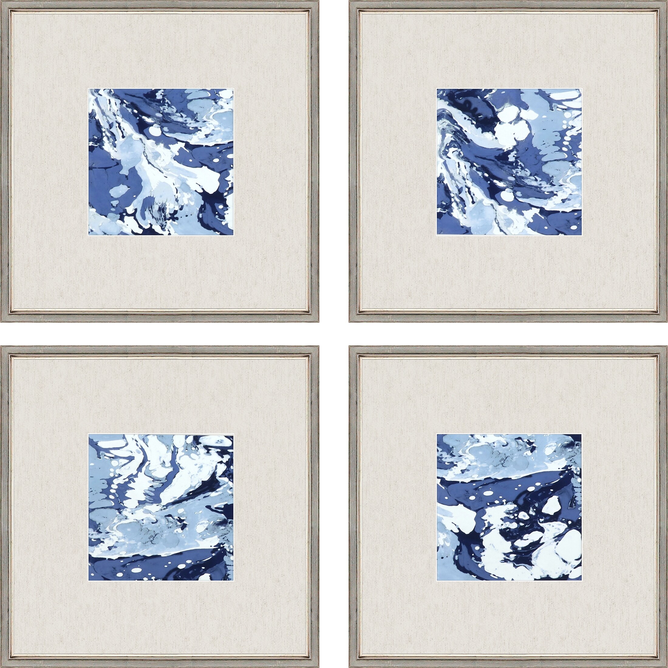 Marbleized S/4 Framed Art Giclee Under Glass - Blue
