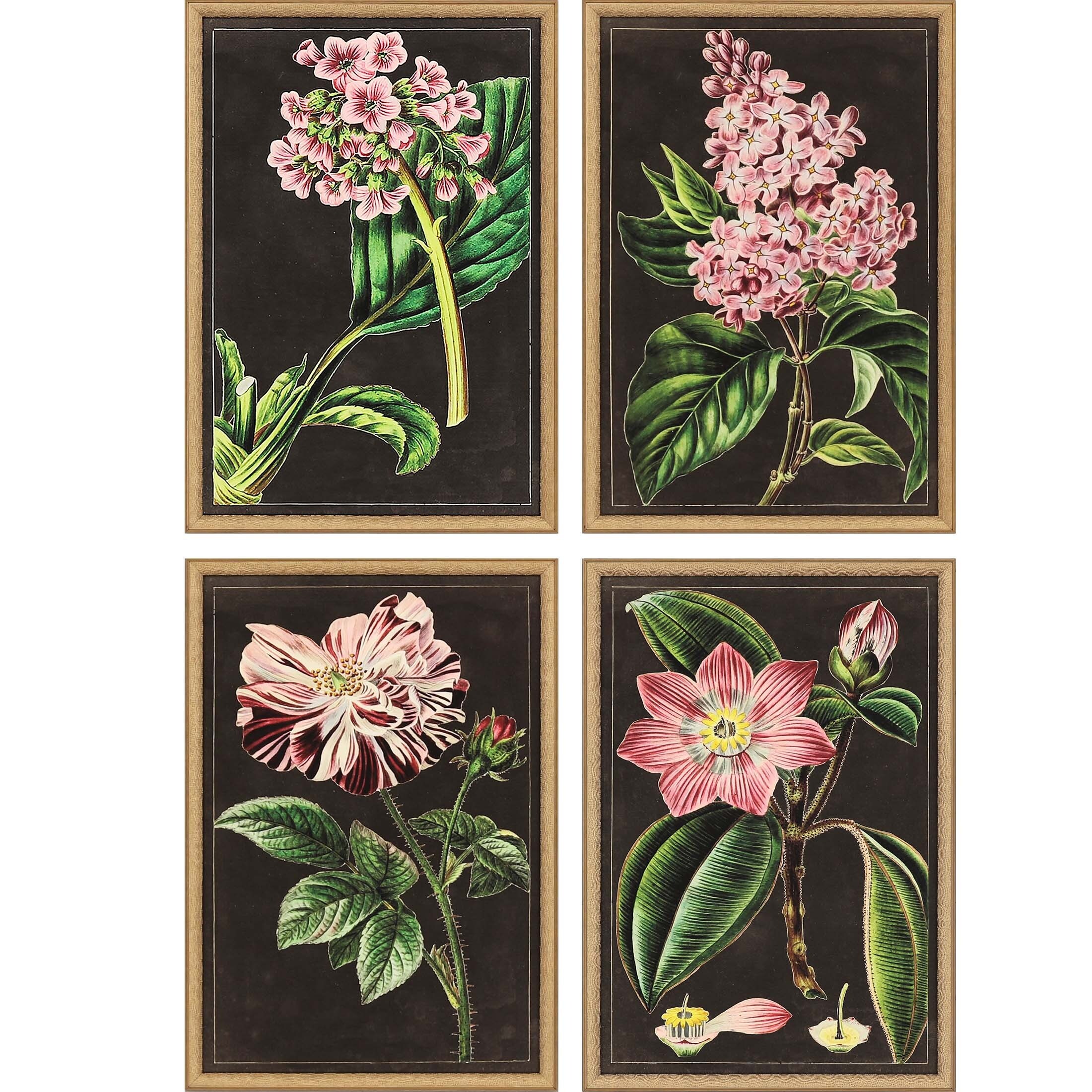 Mauve Botanicals S/4 Framed Art Giclee Under Glass - Pink
