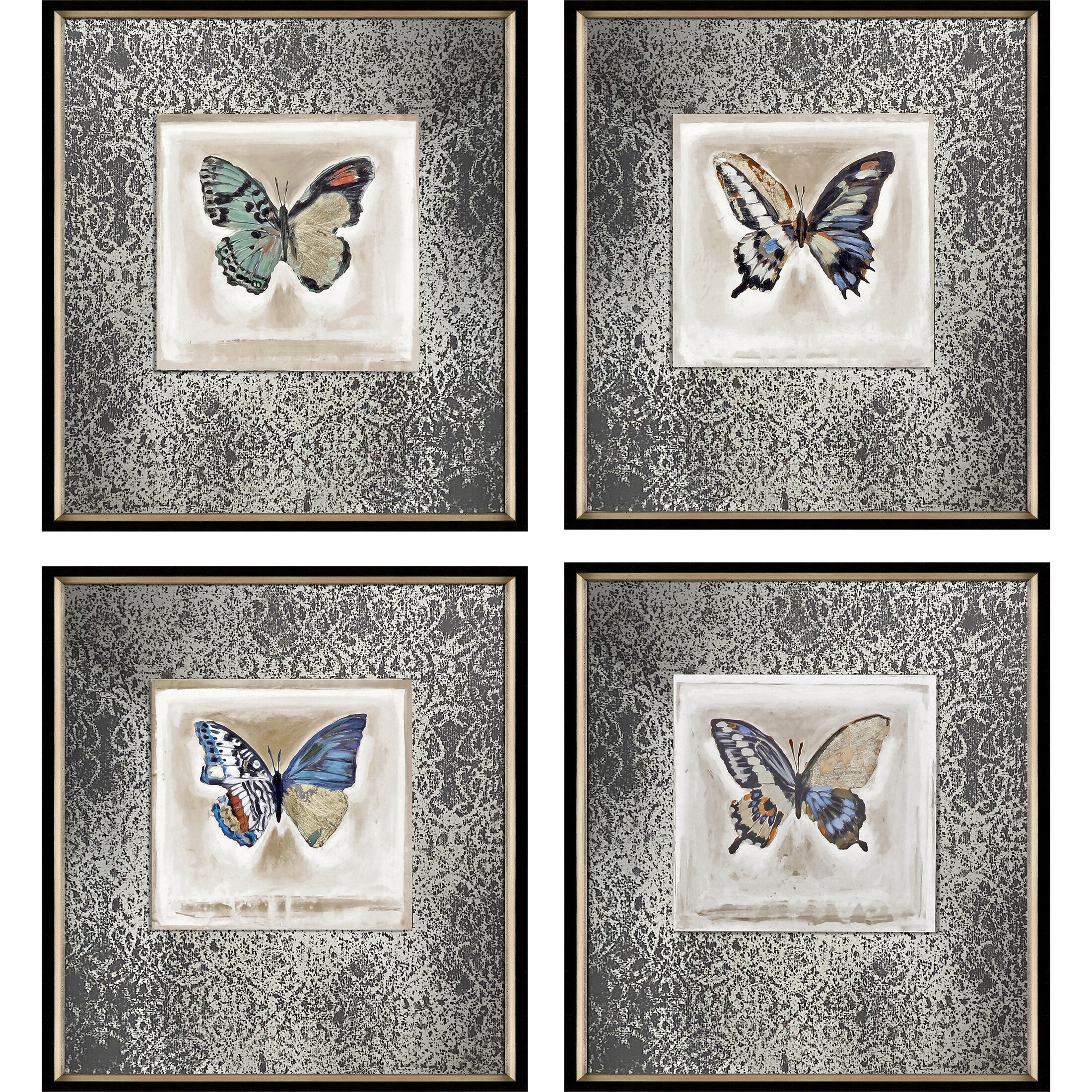 Butterfly S/4 Framed Art Giclee - No Glass - Black