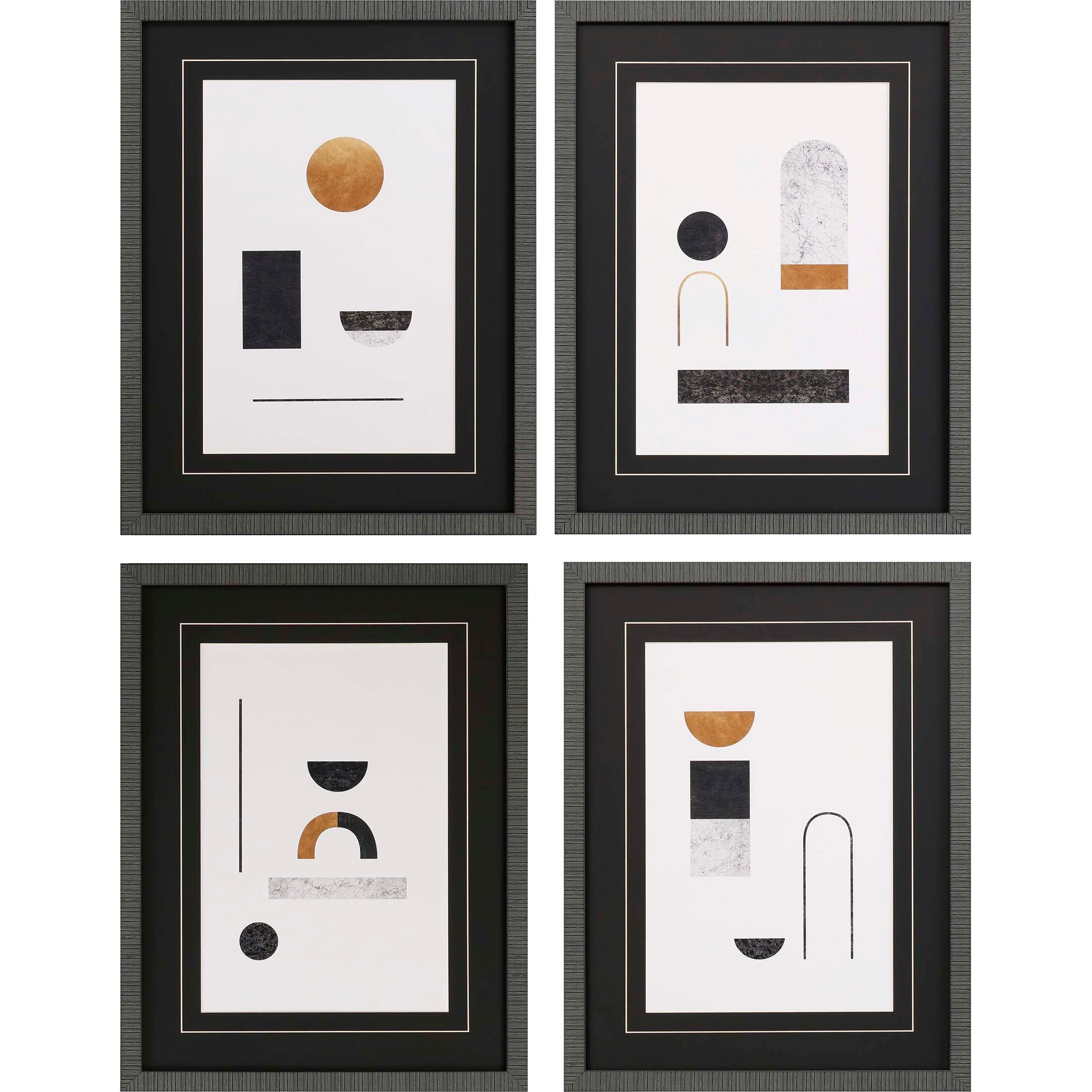 Abstract Luxe S/4 Framed Art Giclee Under Glass - Black