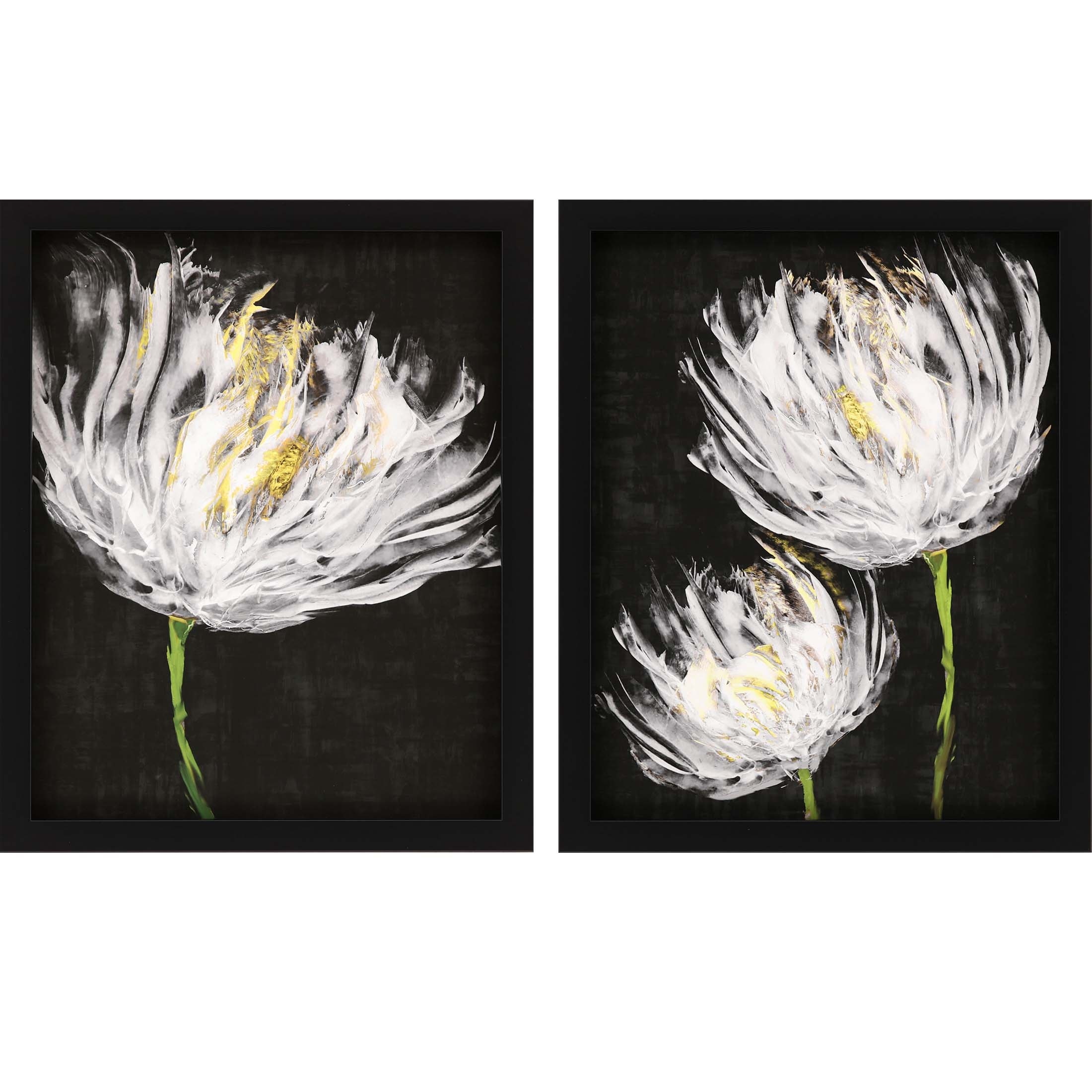 Midnight Blossom I S/2 Framed Art Giclee Under Glass - Blue