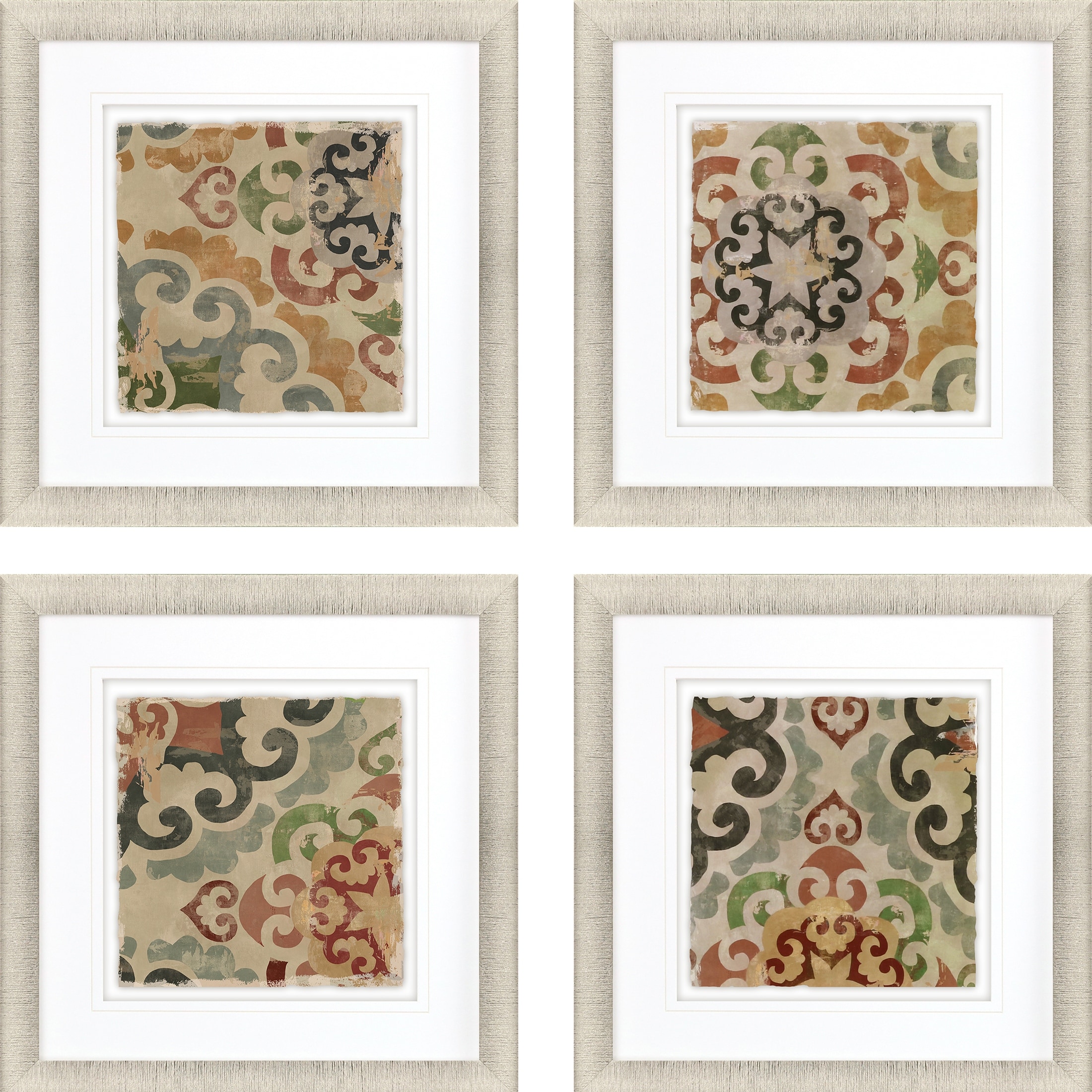 Warm Tile S/4 Hand Finished Framed Art Under Glass - Red