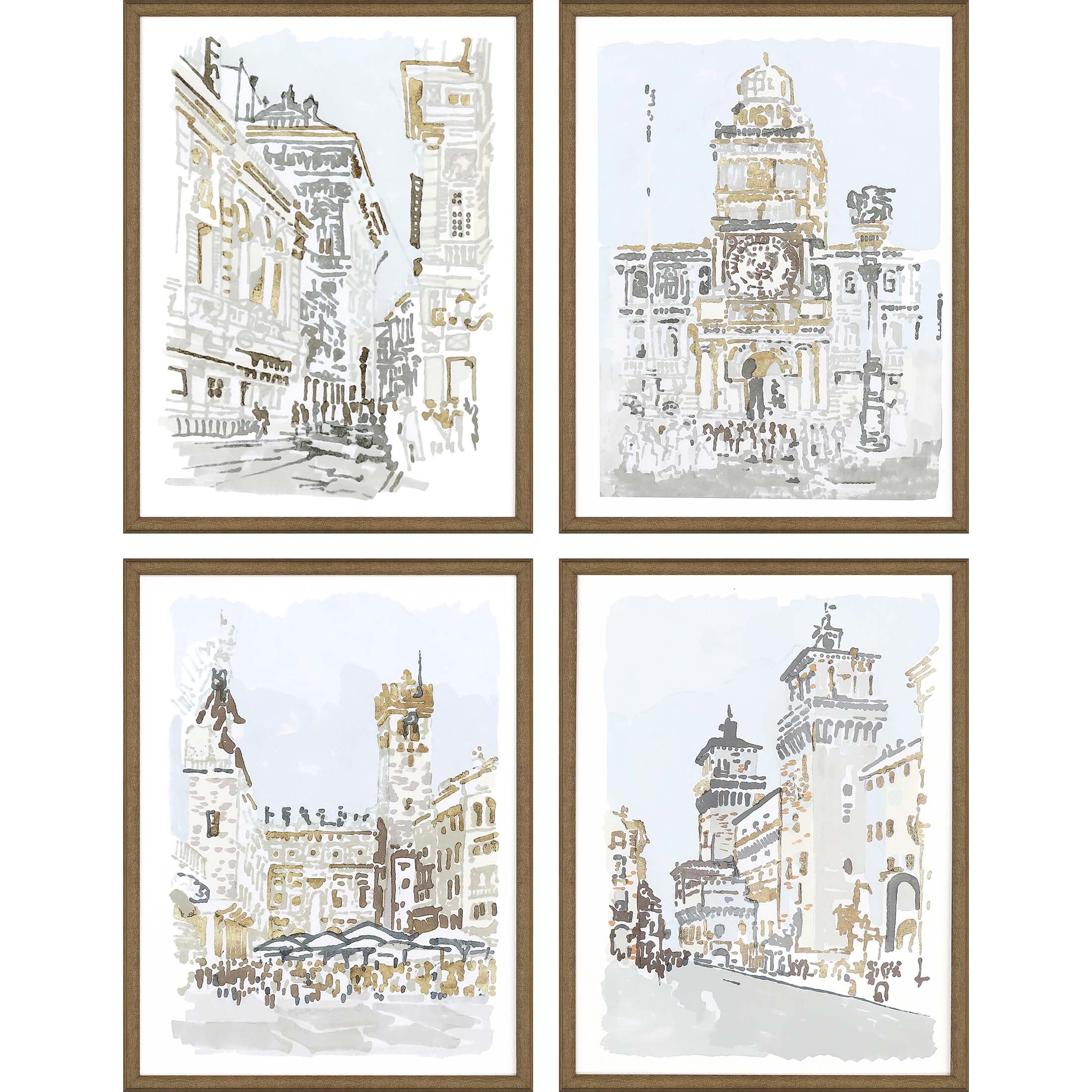 Street Scenes S/4 Framed Art Giclee Under Glass - Multi-Color