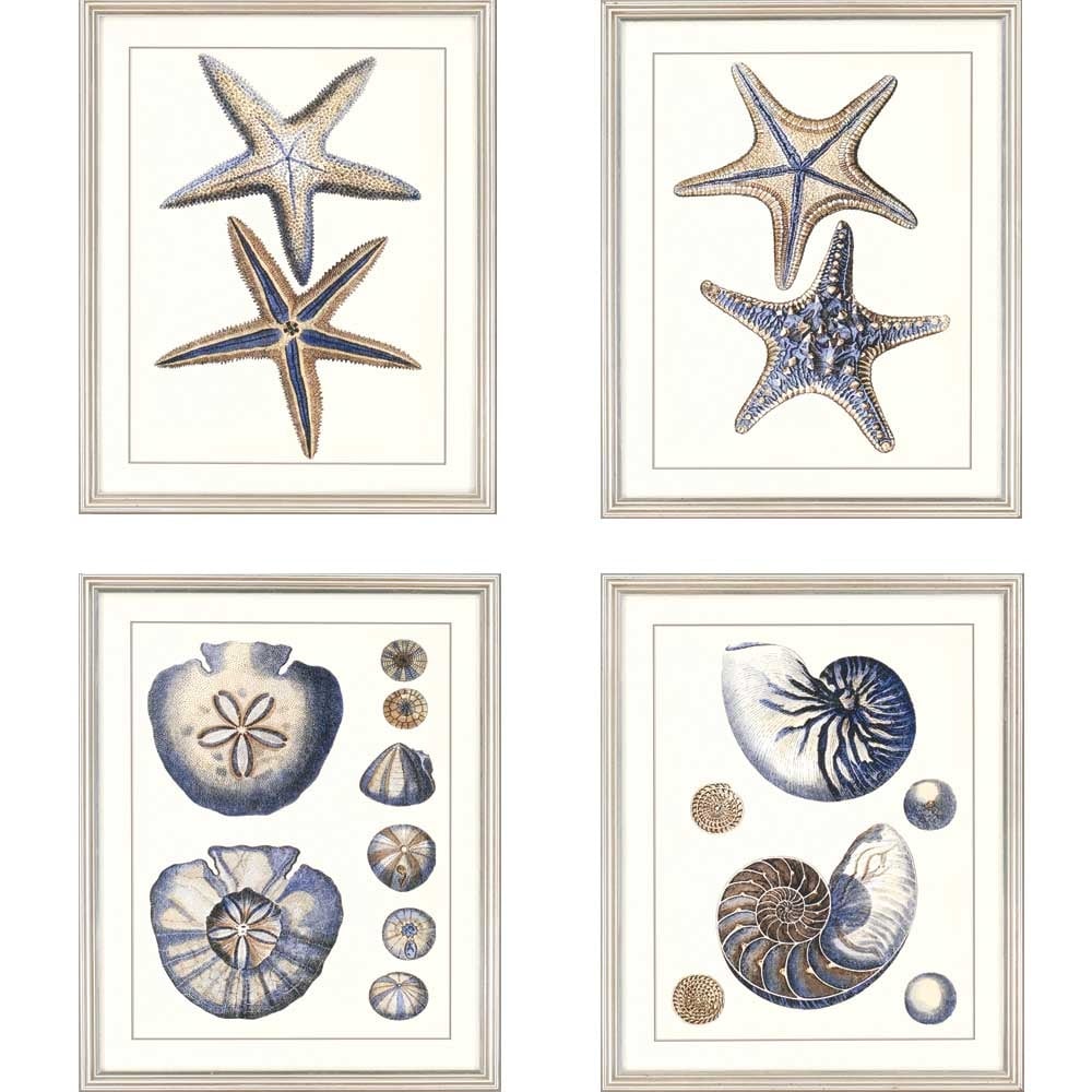 Sea Life S/4 Framed Art Giclee Under Glass - Blue
