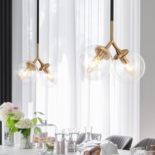 Mid-century Modern Sputnik 4-light Chandeliers Globe Glass Ceiling Lights for Dining Room - D 19.5'' x H 65.5''