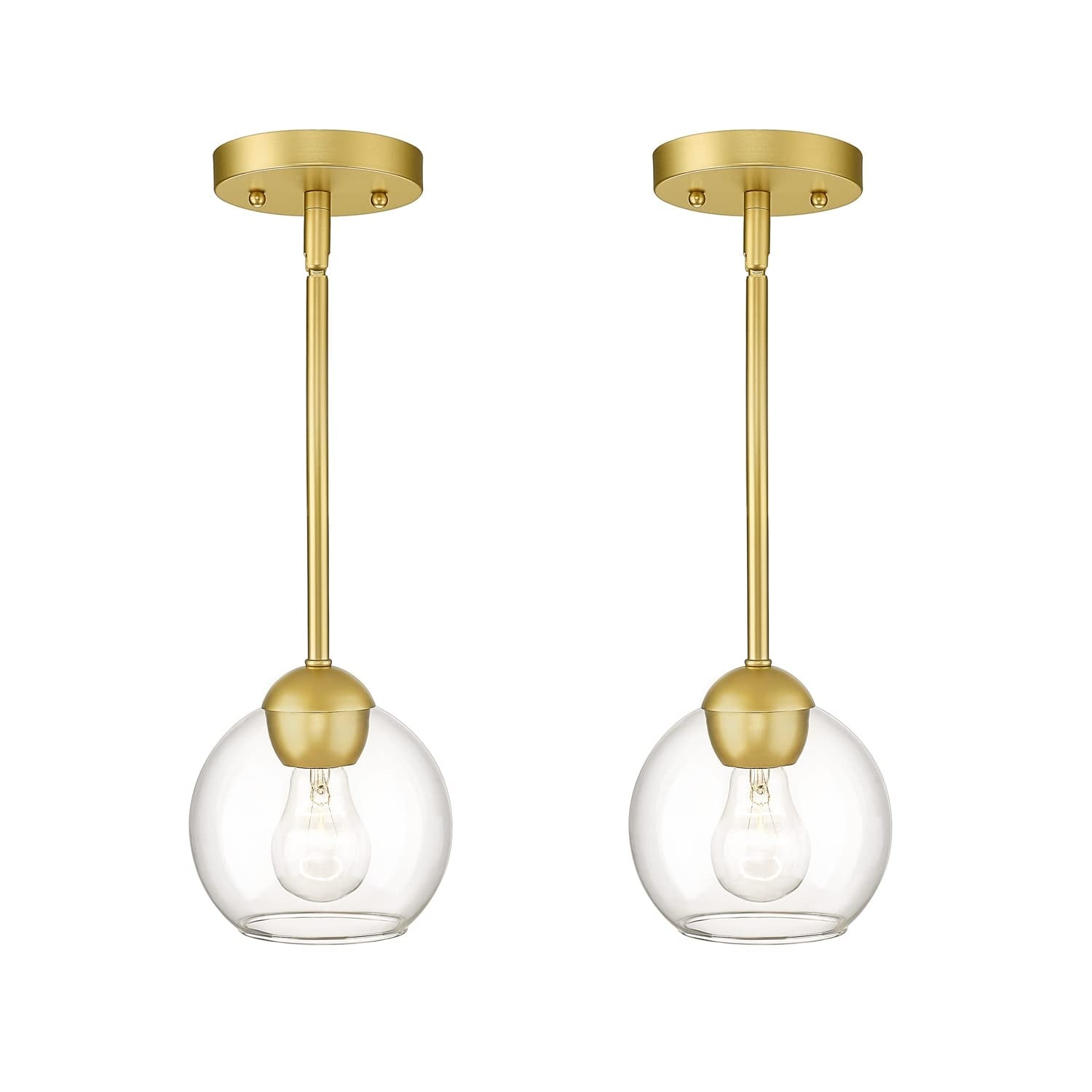 Gold Pendant Light with Clear Globe Glass Lampshade for Bedroom Room