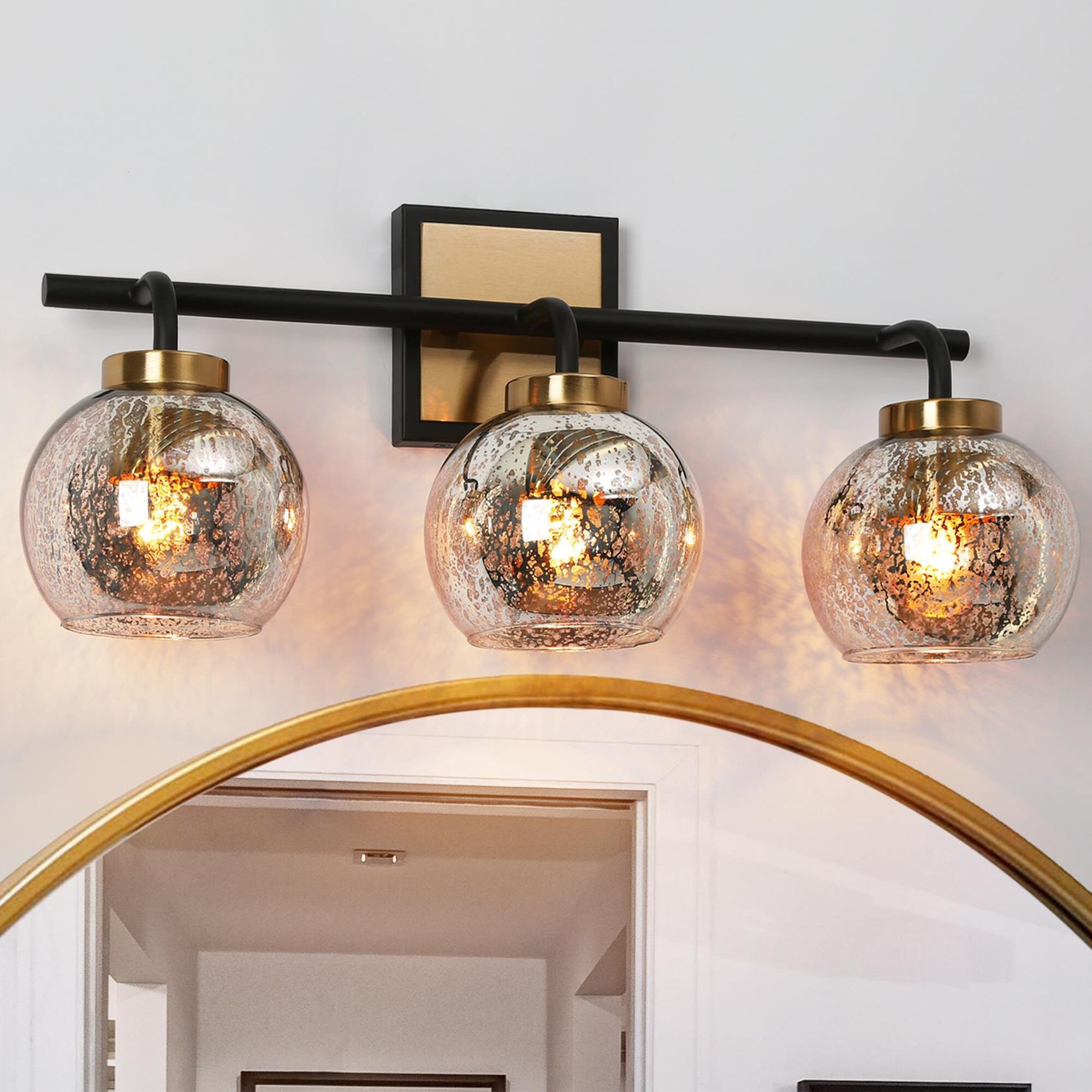 Ziv Modern 3-Light Black Gold Bathroom Vanity Lights with Mercury Globe Glass Shades