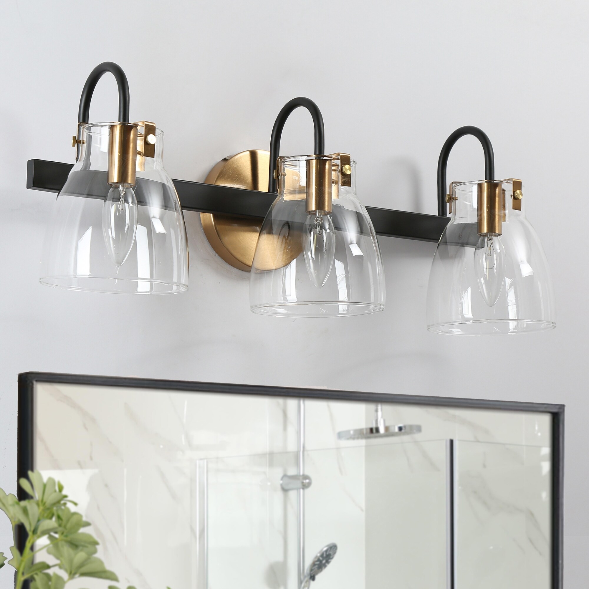 Mid-Century Modern Black Gold 3-Light Bathroom Vanity Lights Globe Glass Wall Sconces - Black/Gold - L 22.4"xW 7.8"xH 7.5"