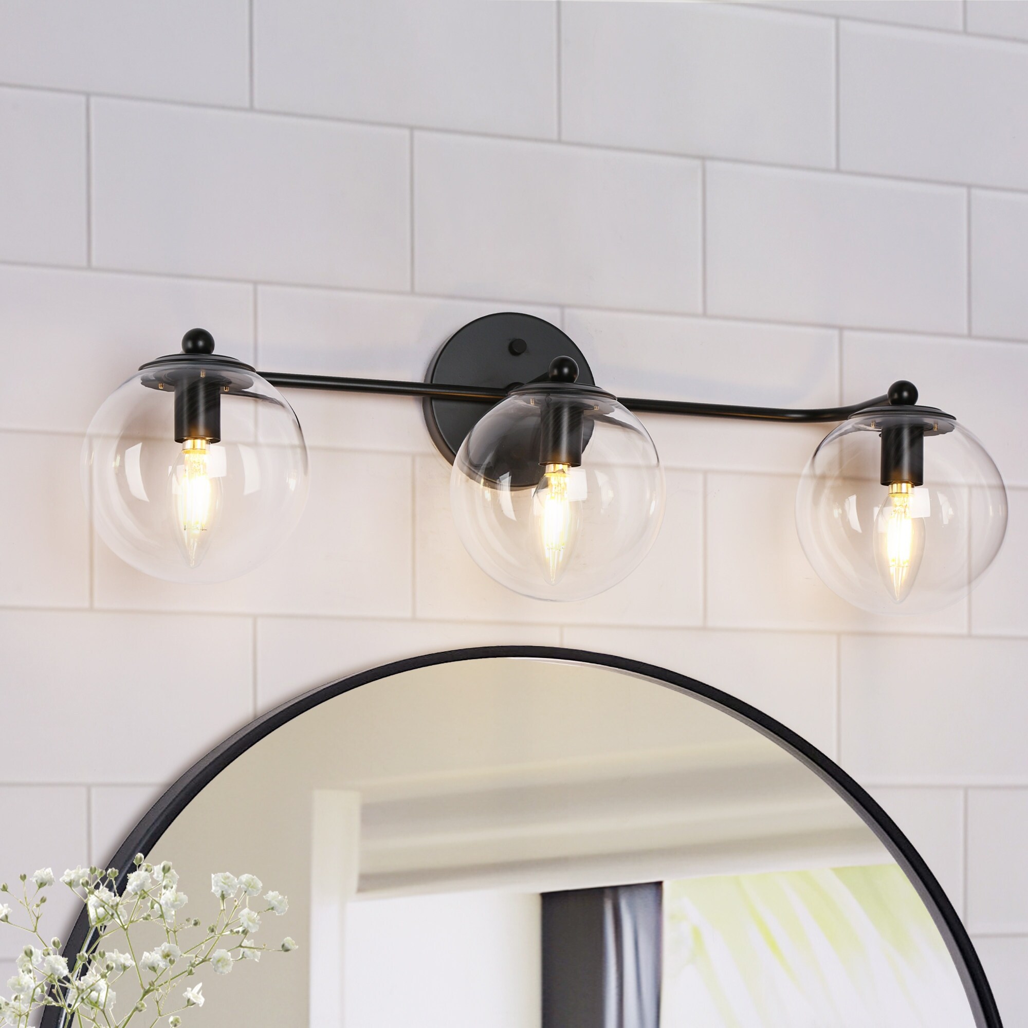 Modern 3-Light Black Bathroom Vanity Lights Globe Glass Wall Sconces - 24.5" L x 7.5" W x 8" H