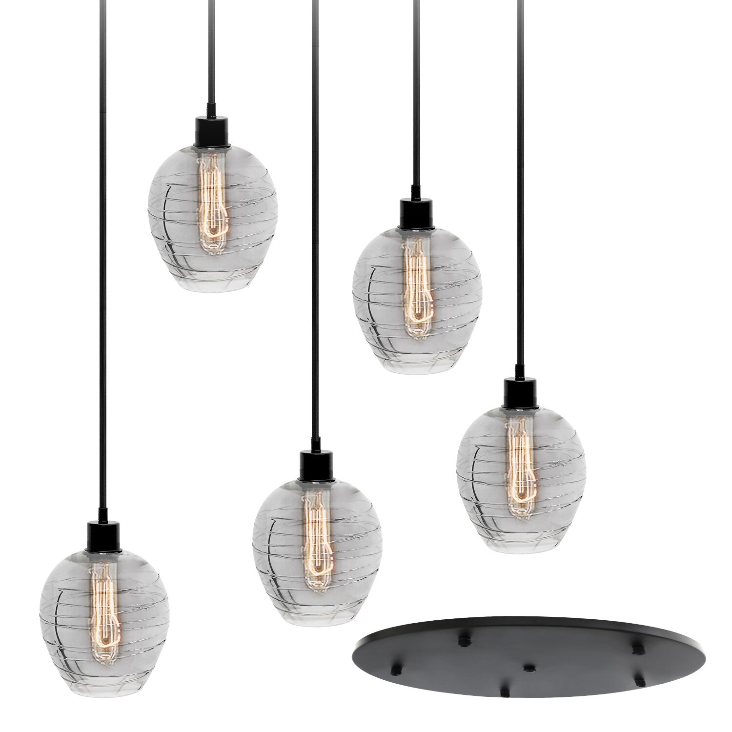 5 Lights Chandelier Black Modern Pendant Light with Globe Glass Shade