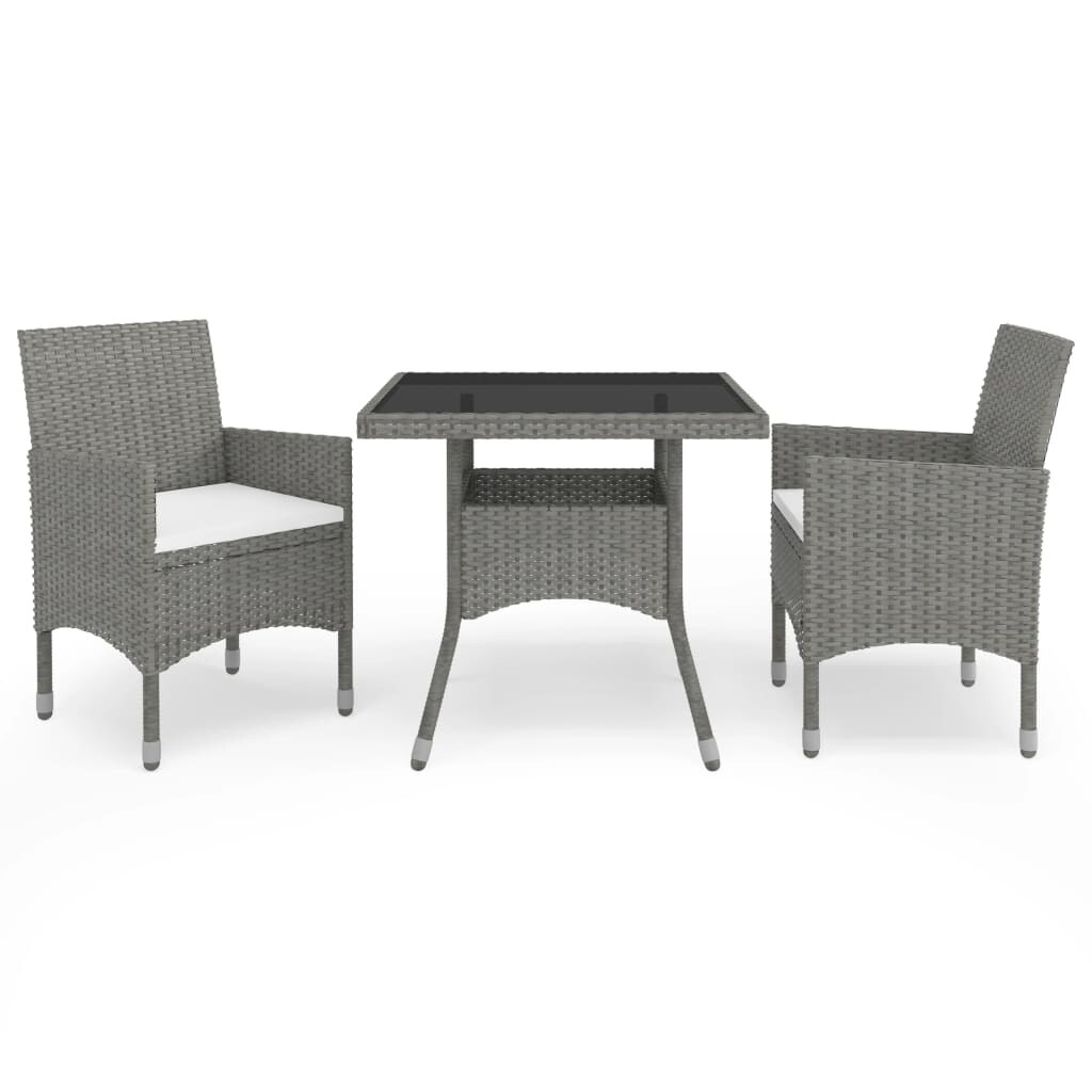 3 Piece Garden Dining Set Gray Poly Rattan and Glass