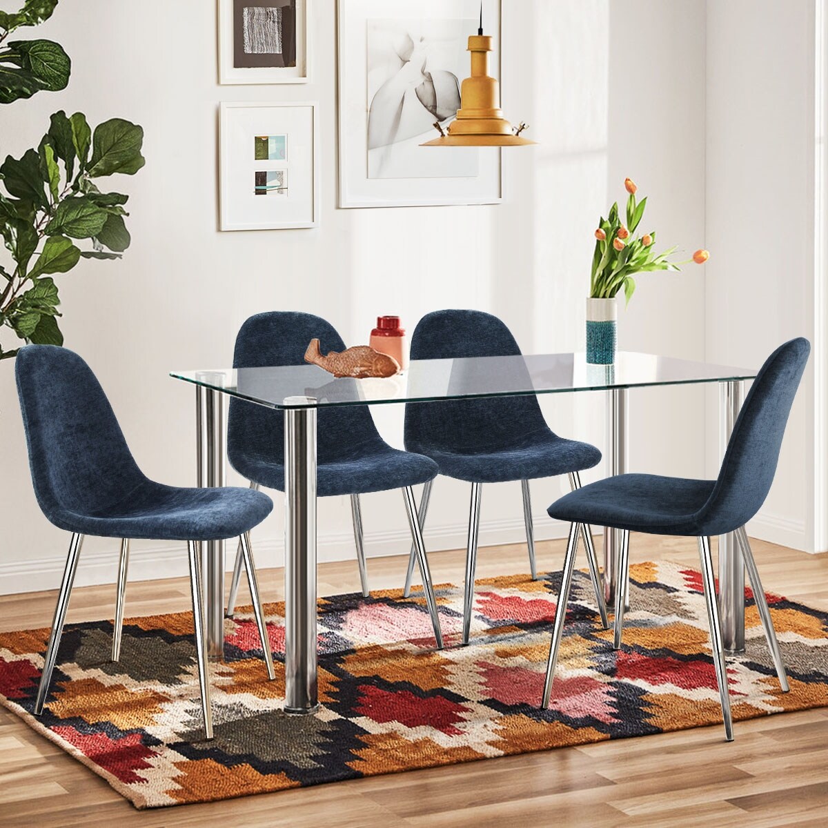 5 Pieces Dining Set, Tempered Glass Table and 4 Fabric Chairs