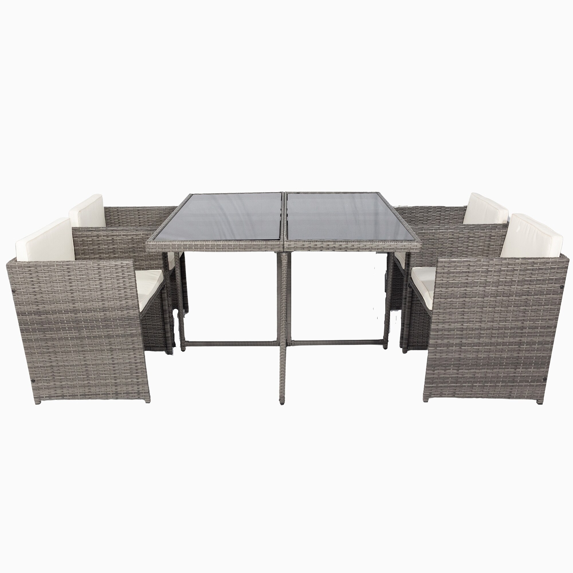 5 Pieces Rattan Outdoor Dining Sets with Glass Table and Beige Cushions