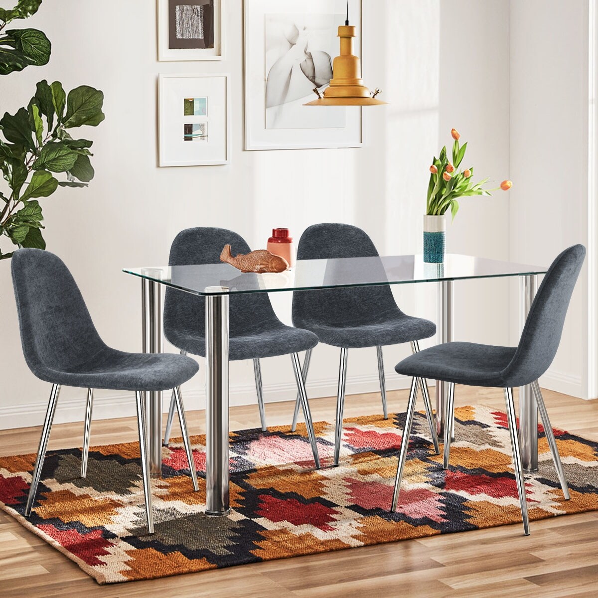 Dining Table Set Modern 5 Pieces Dining Room Set Mid Century Tempered Glass Kitchen Table and 4 Modern Fabric Chairs