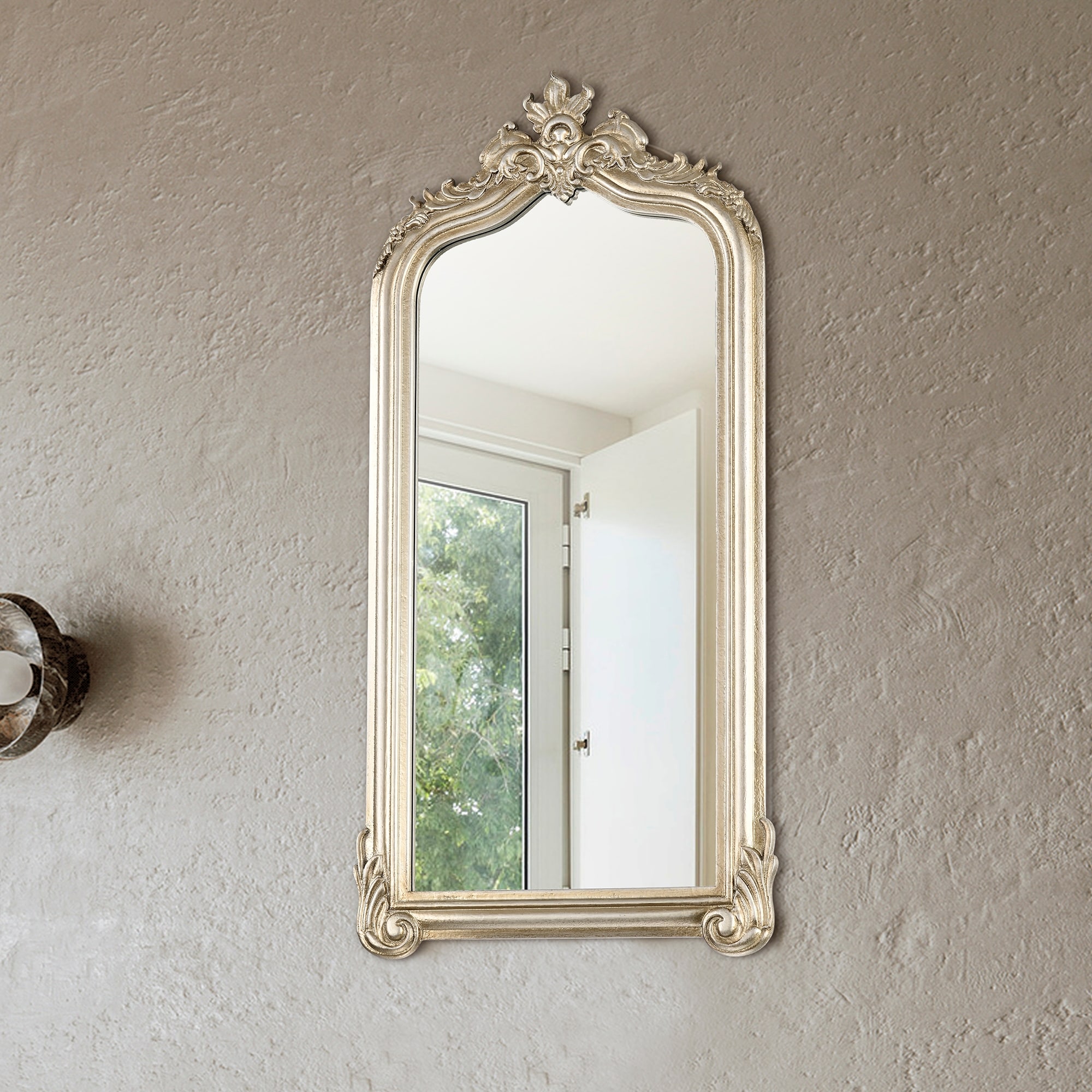 Antique Gold 18 in. W x 35 in. H Ornate Arch Metal Framed Classic Mirror - 17.75 in. W x 35.5 in. H x 1.25 in. D