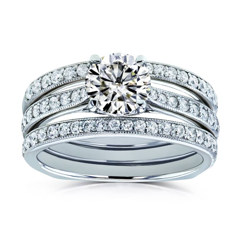 Annello by Kobelli 14k White Gold 1 4/5ct TCW Forever One Colorless (DEF) Moissanite and Diamond Bridal Rings 3-pc Set