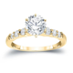 Auriya 14k Gold 1ct Round Brilliant Moissanite and 1/3ctw Diamond Engagement Ring