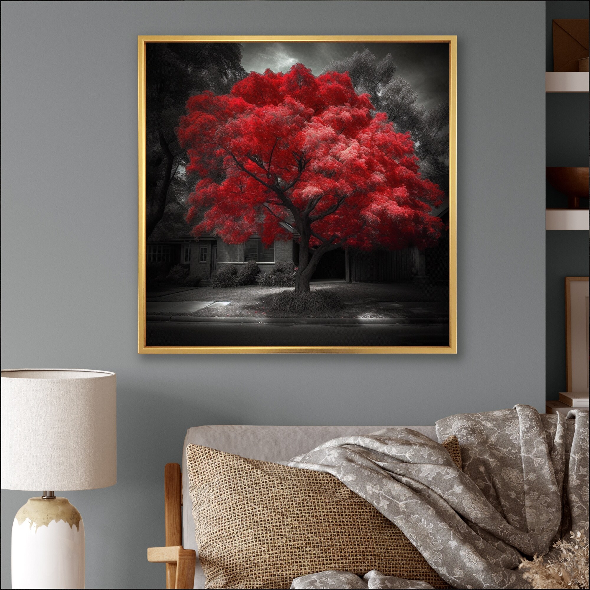 Designart "Red Tree Blossom Haven Ii" Tree Floral Framed Canvas Wall Art