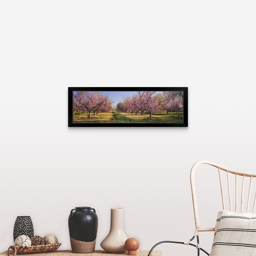 "Cherry trees in an orchard, South Haven, Michigan" Black Float Frame Canvas Art