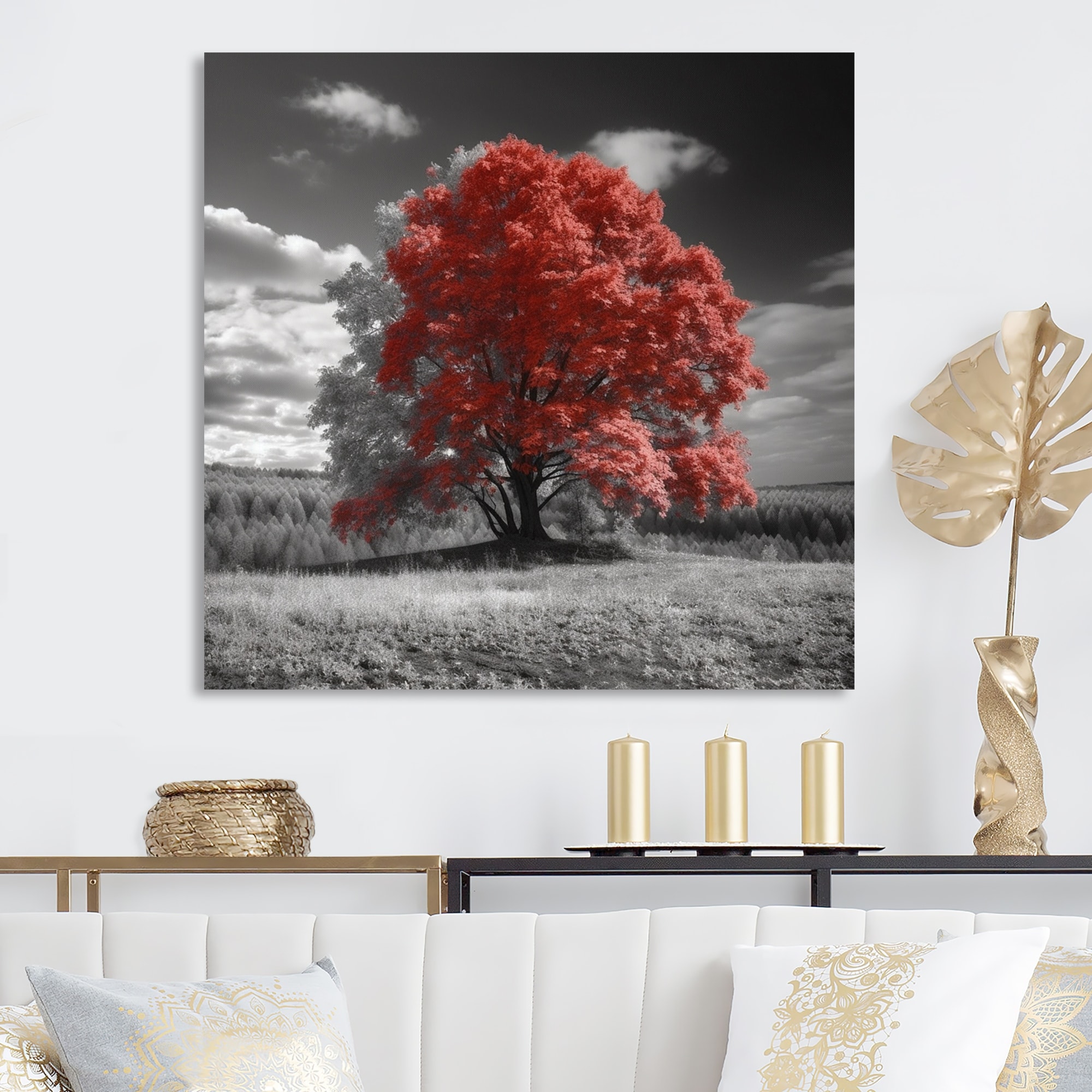 Designart "Red Tree Blossom Haven I" Tree Floral Metal Wall Art
