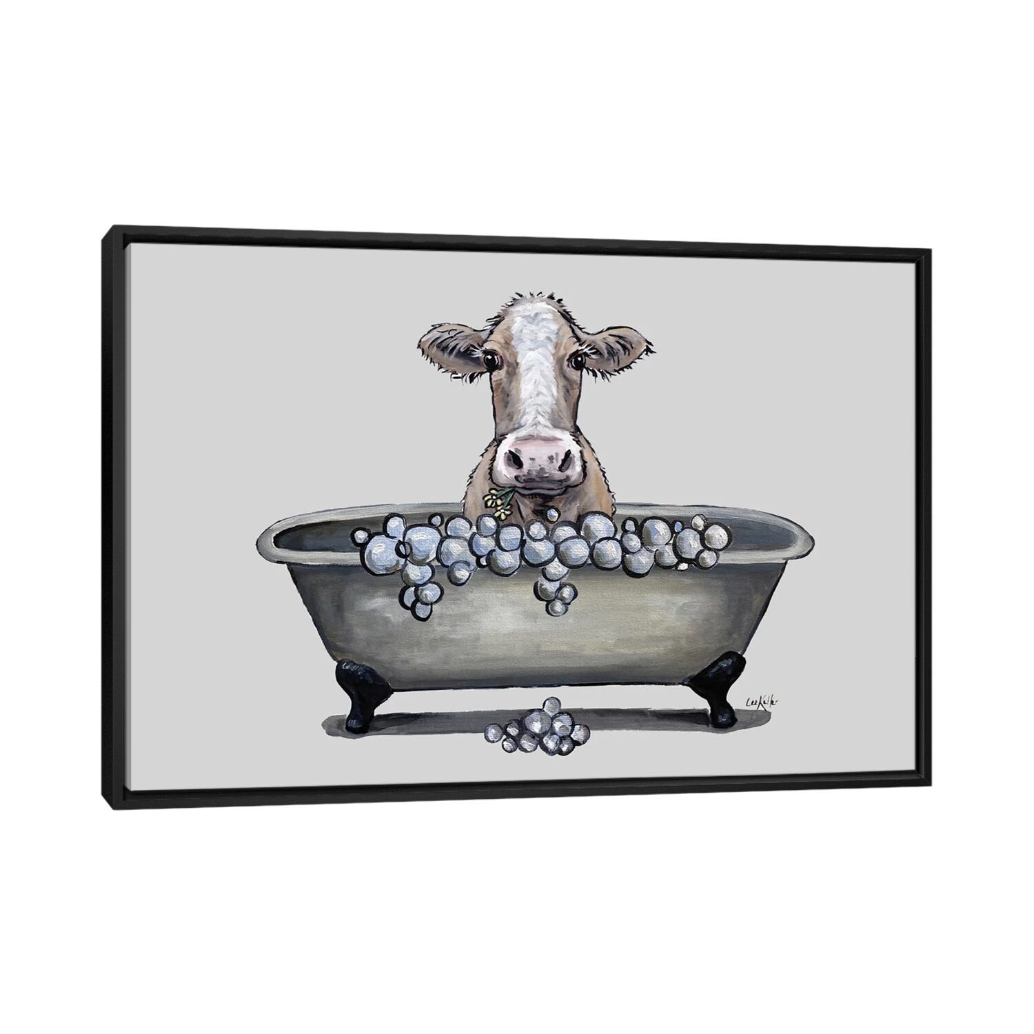 iCanvas "Cow In A Tub, Cow Bathroom Art 'maizy'" by Hippie Hound Studios Framed Canvas Print