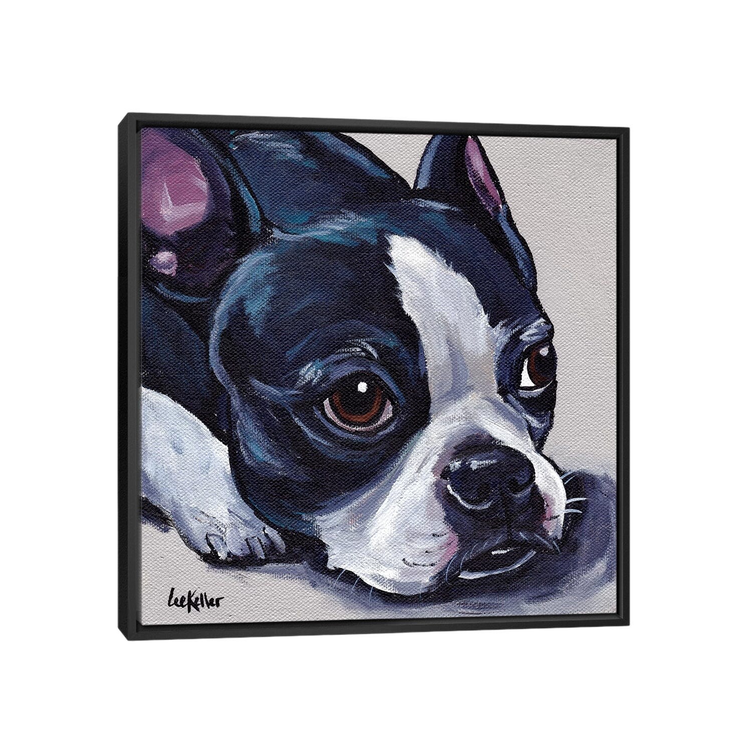 iCanvas "Boston Terrier on Tan" by Hippie Hound Studios Framed Canvas Print
